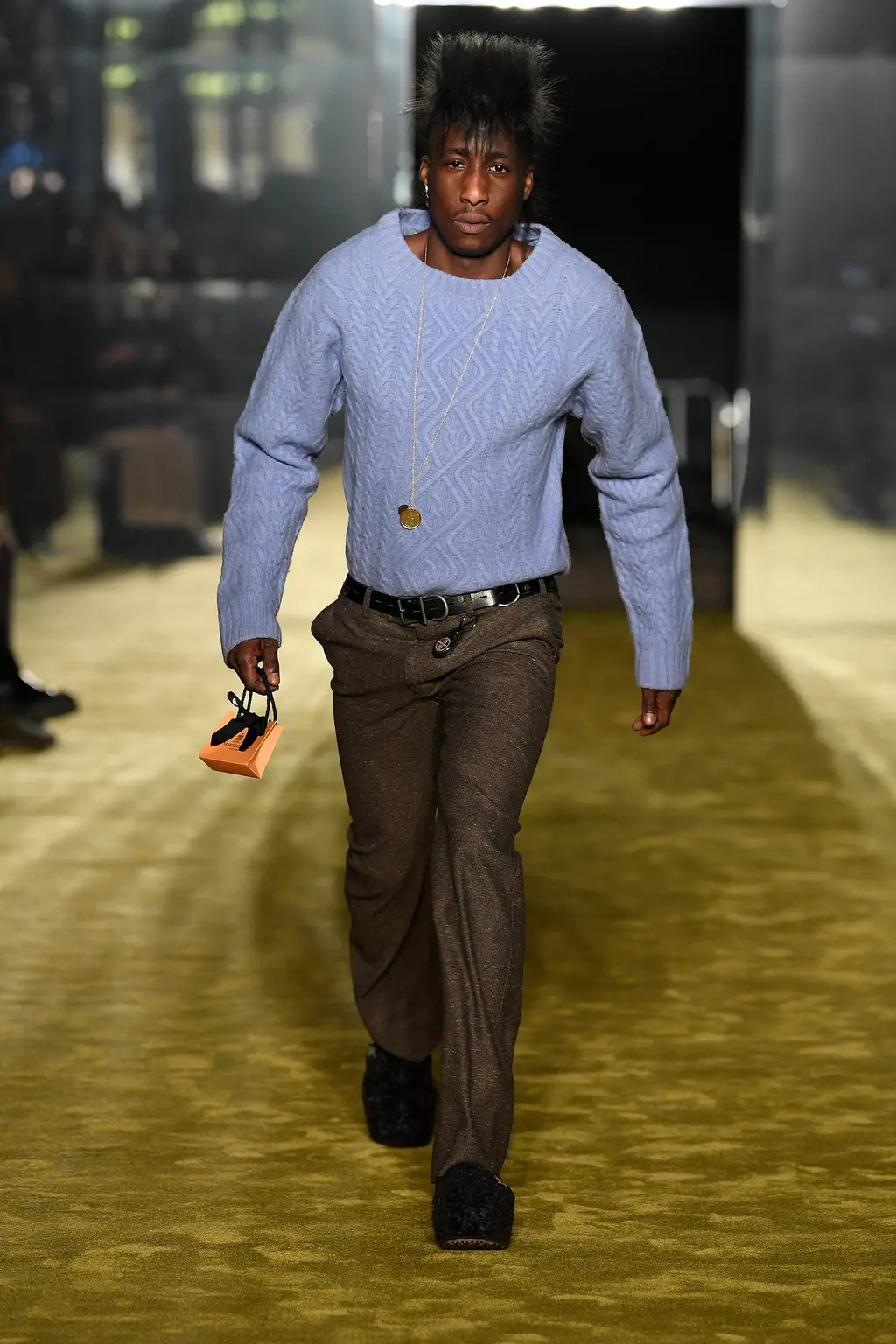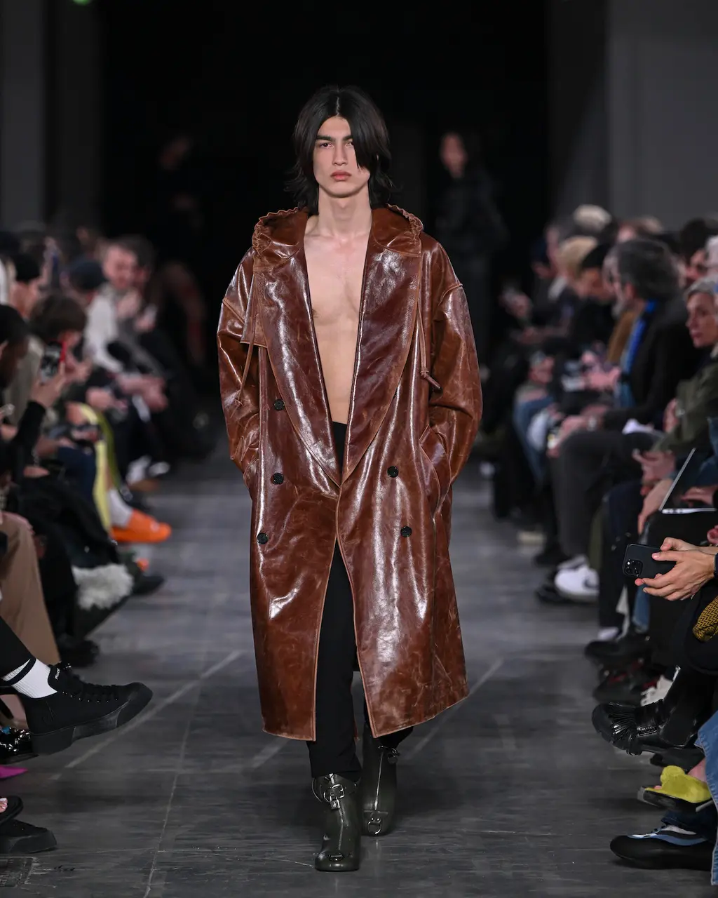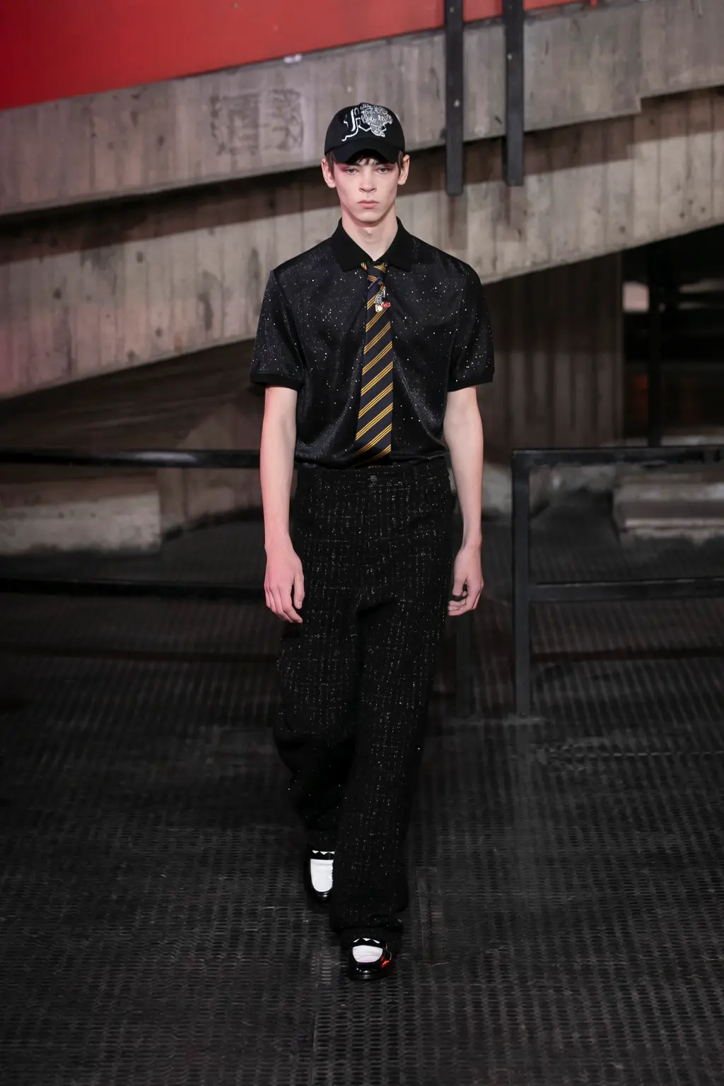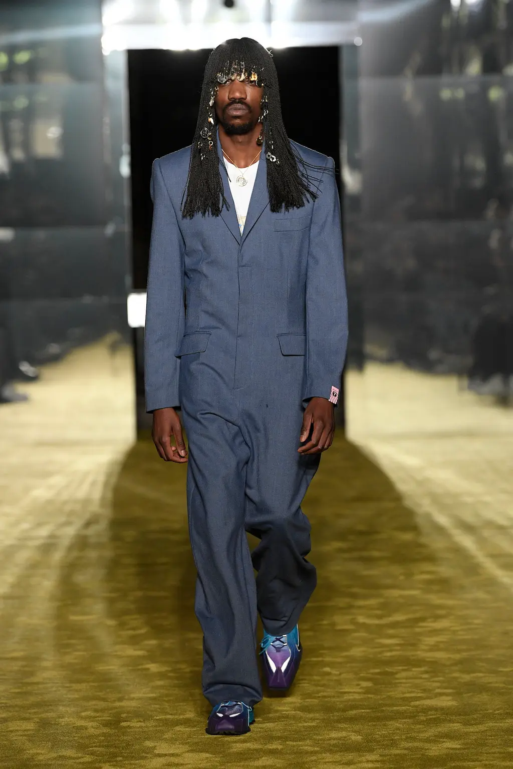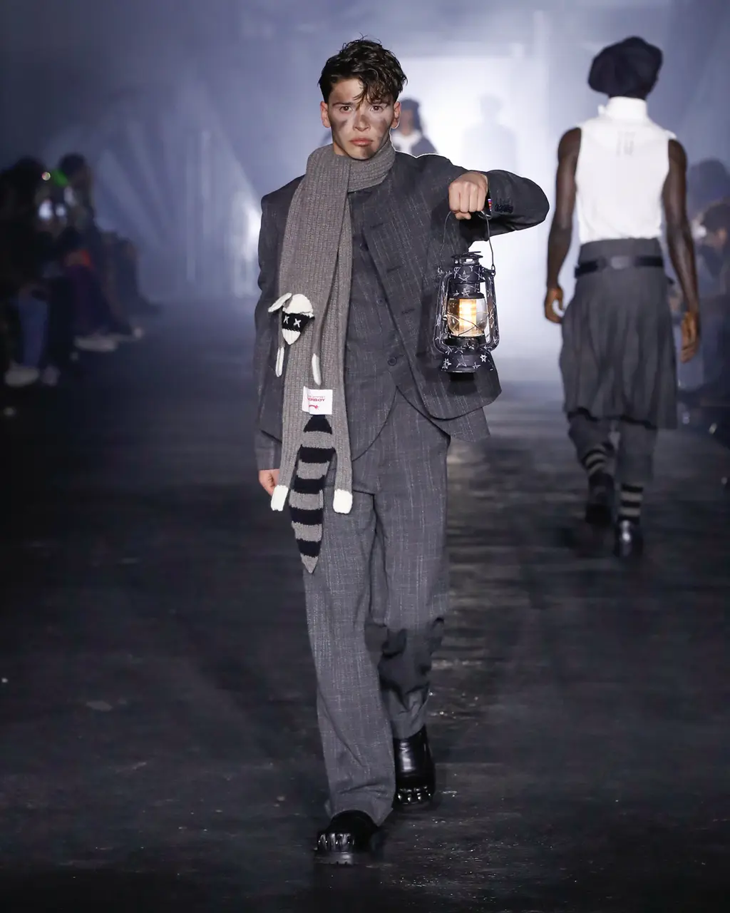 [For what it’s worth, we thought the show was excellent, taking place in a murky, industrial setting, and transitioning between coal-faced workwear, classic Charles tailoring, and some properly foppish balderdash to finish. Also the closing track was literally called Charles Jeffrey, which is quite the flex, isn’t.]
