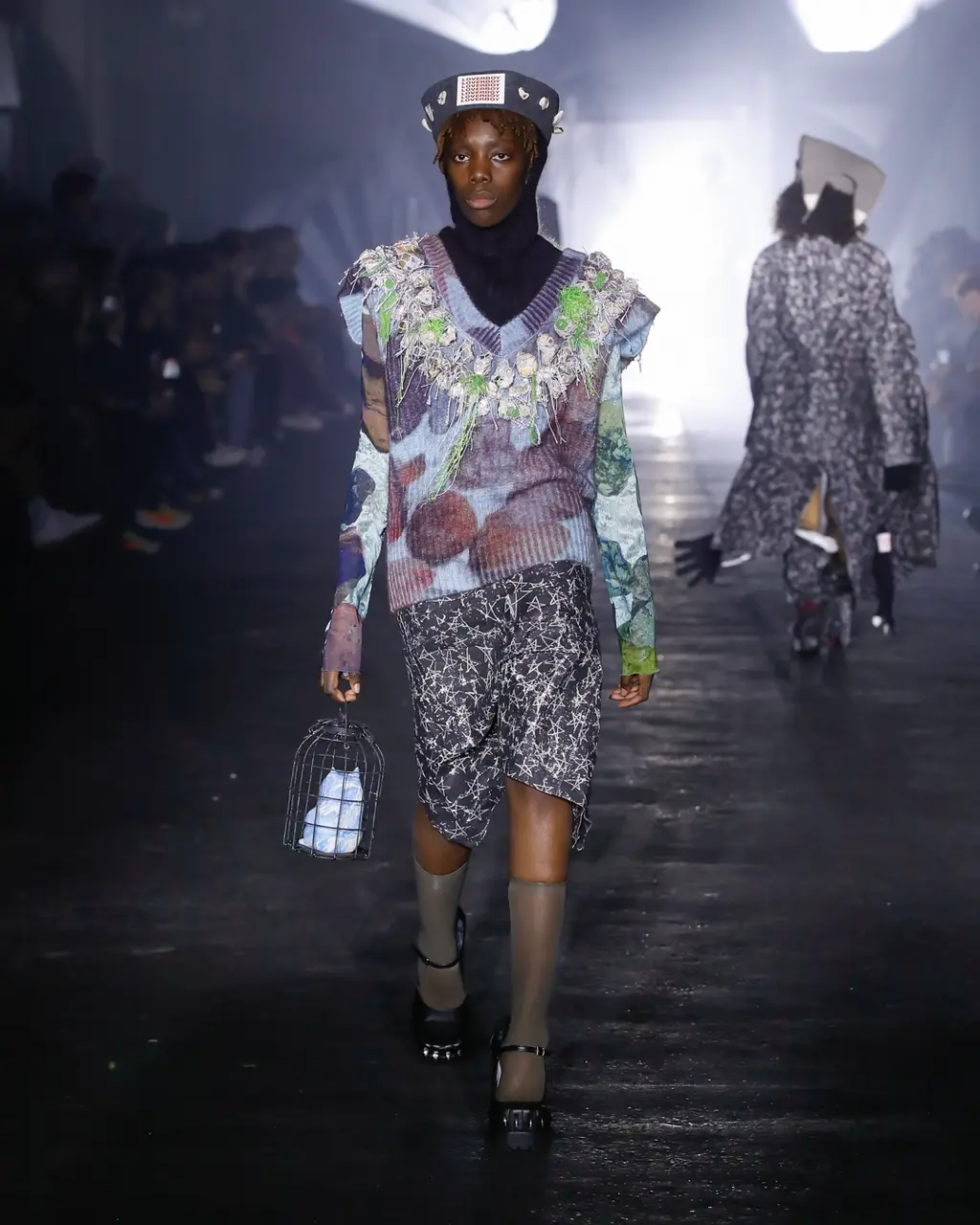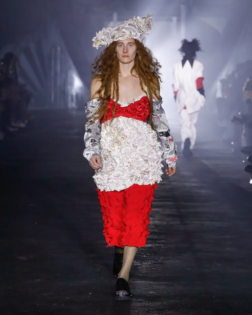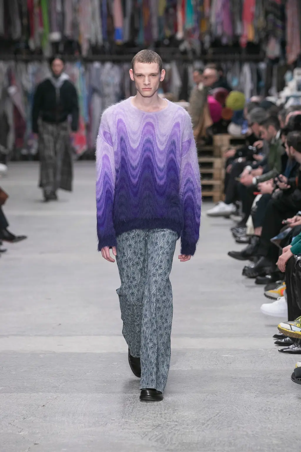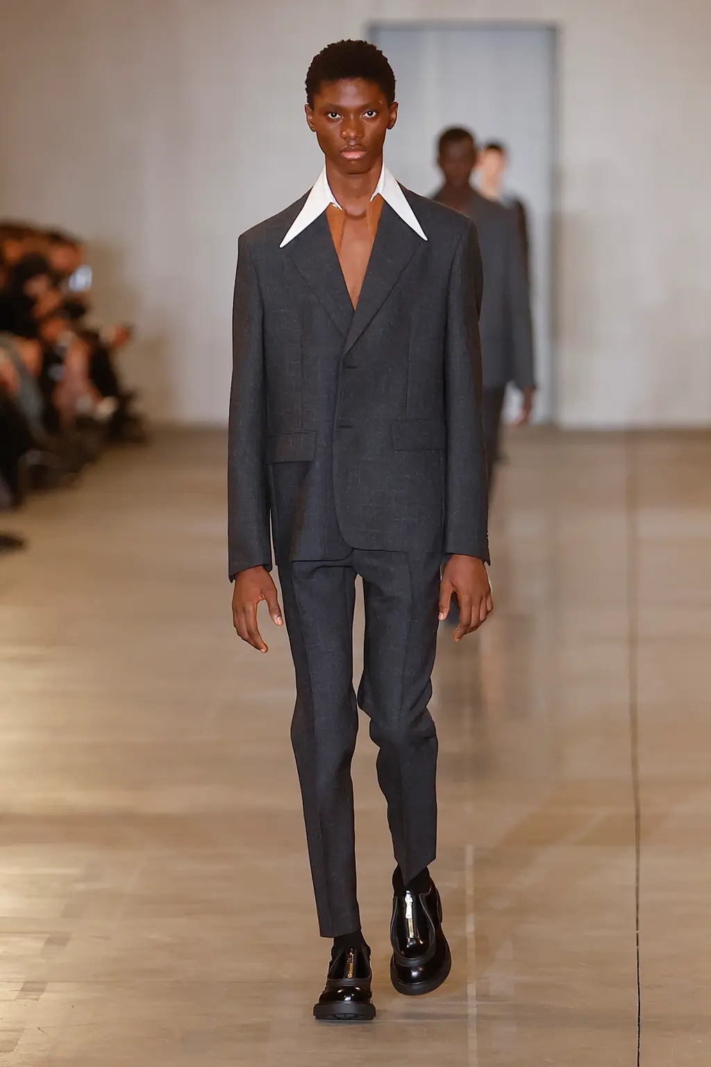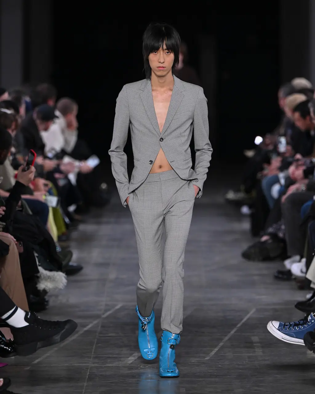 [For what it’s worth, we thought the show was excellent, taking place in a murky, industrial setting, and transitioning between coal-faced workwear, classic Charles tailoring, and some properly foppish balderdash to finish. Also the closing track was literally called Charles Jeffrey, which is quite the flex, isn’t.]
