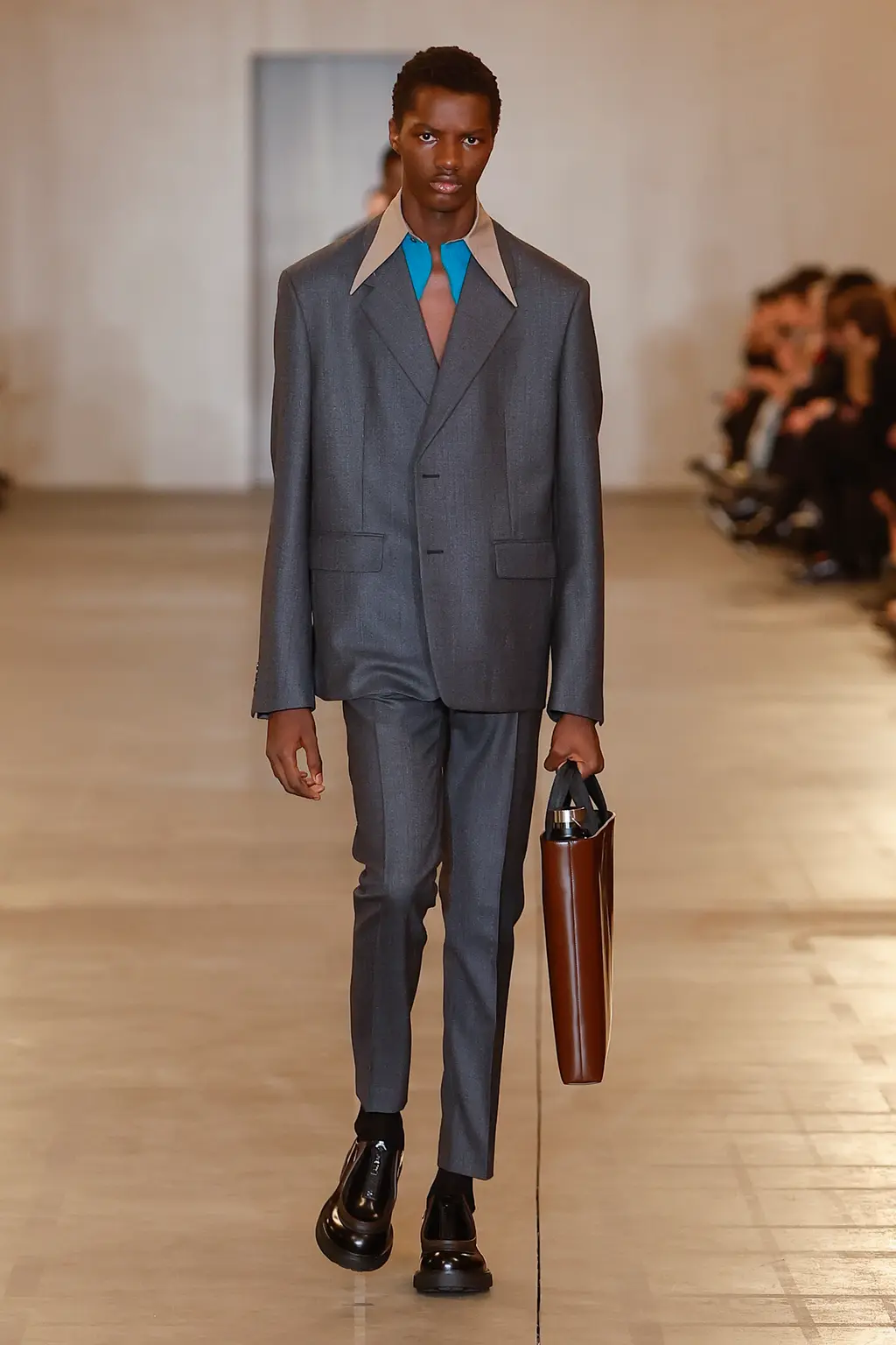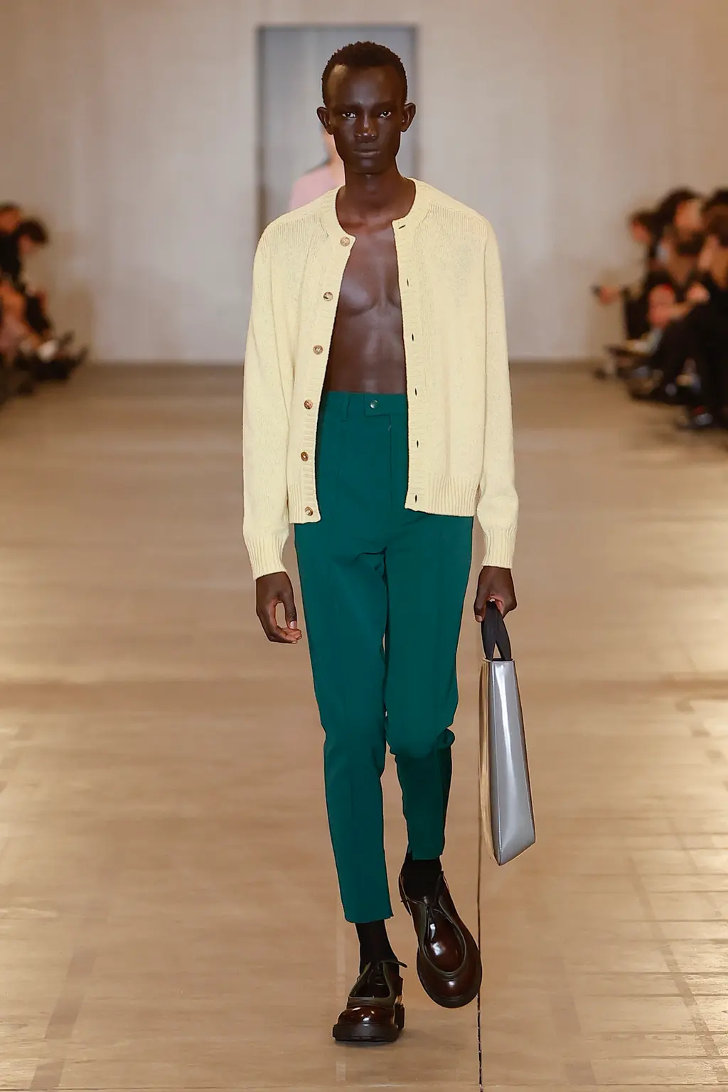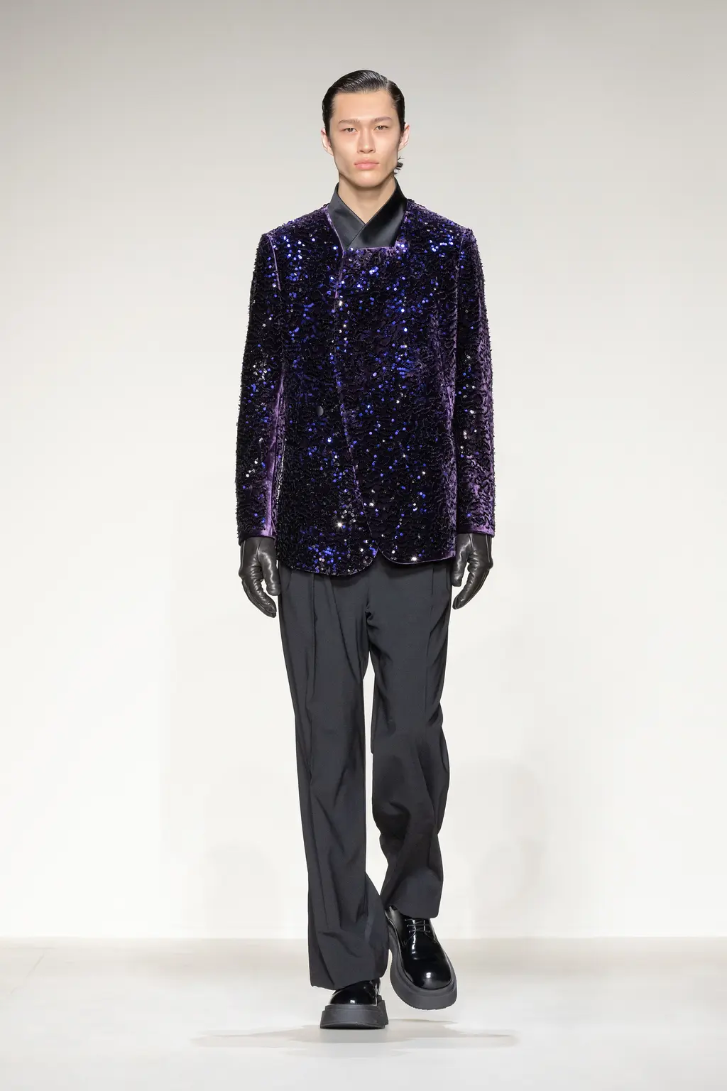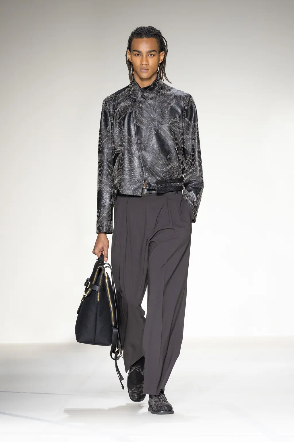 The menswear debut of designer Marco De Vincenzo, following his first women’s show last September