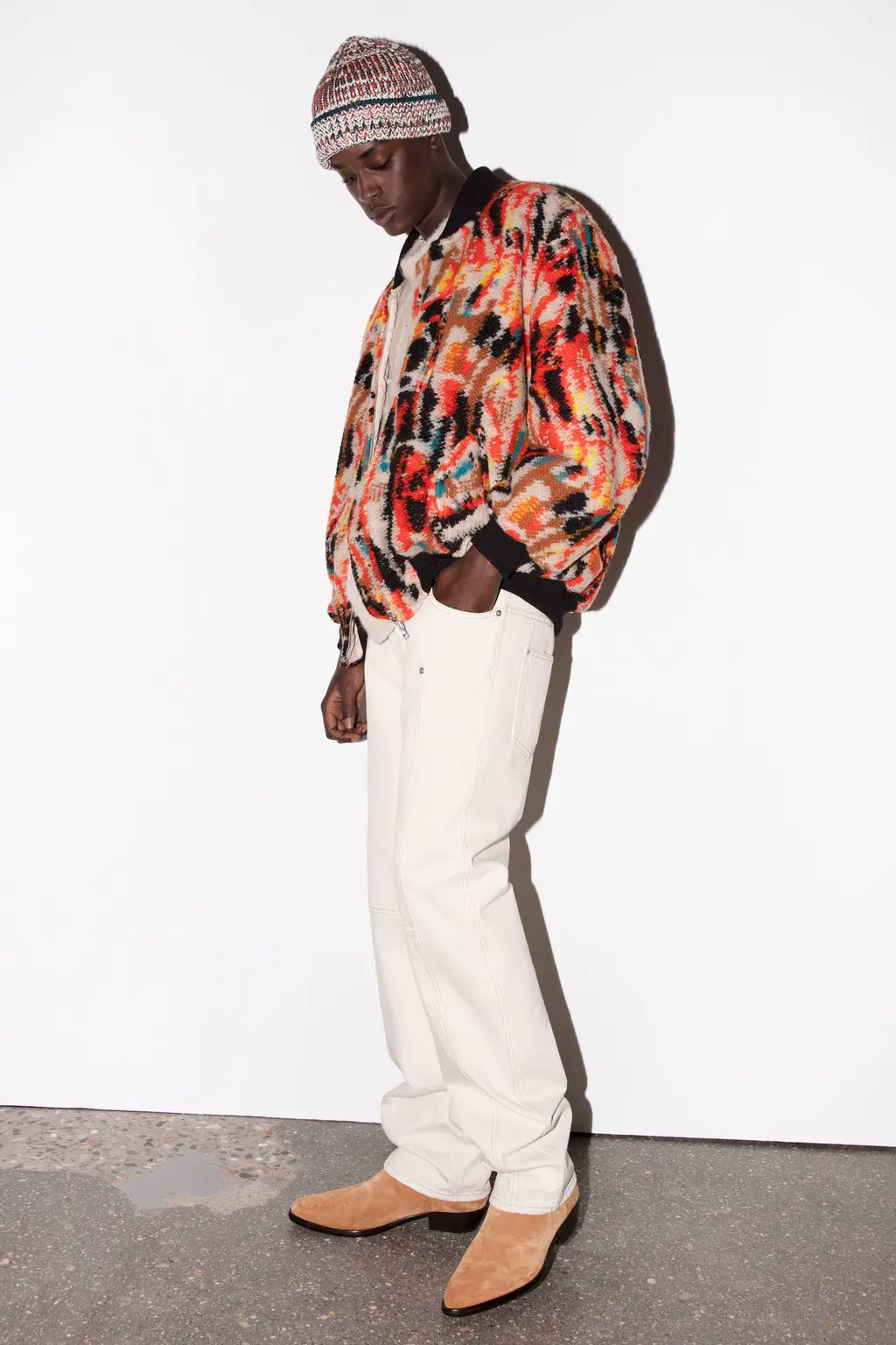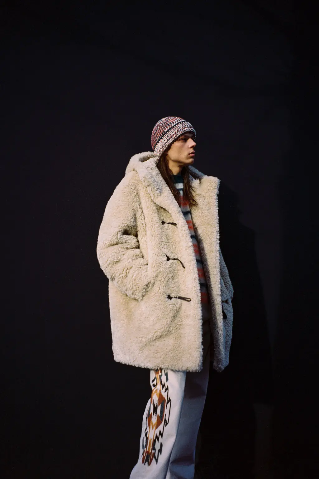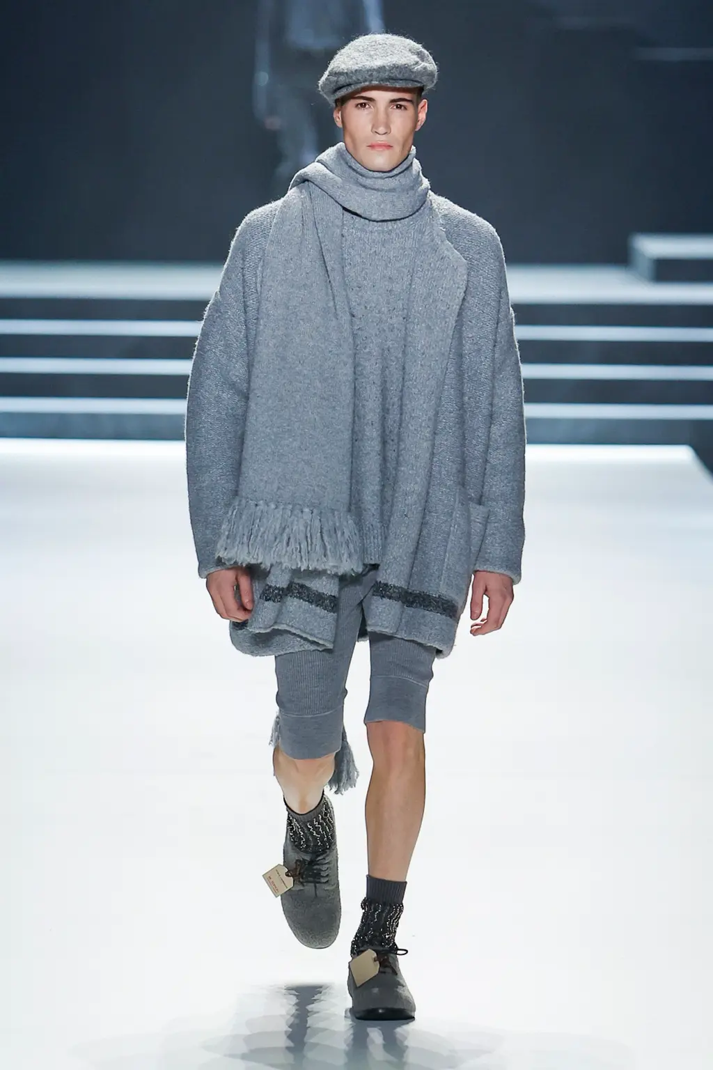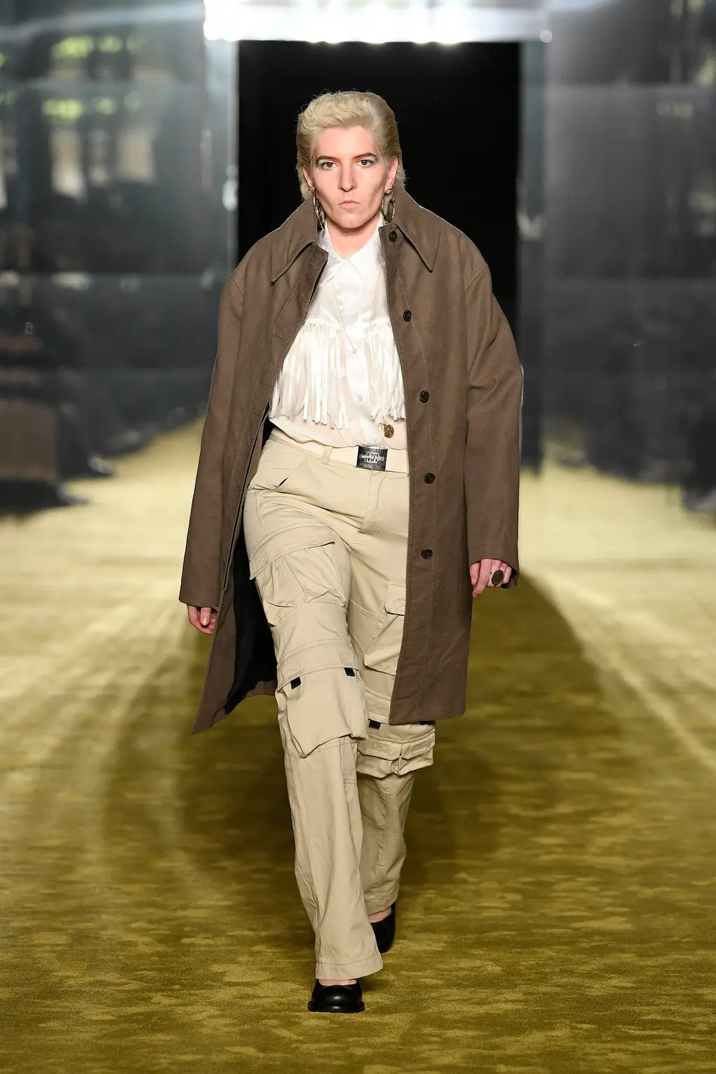 God knows, some big room somewhere. It was quite dark inside until the lights came on and illuminated a teenage bedroom, filled with Pac-Man paraphernalia, at the end of the runway. “Junior?” yelled a voice off-stage as a floppy-haired model pulled on a pair of pink cowboy boots and fringed jacket. “Get out of that bed if you ever want to be somebody!” Then, for some reason, the Grease soundtrack came on and– oh, who cares, it’s so much fun.