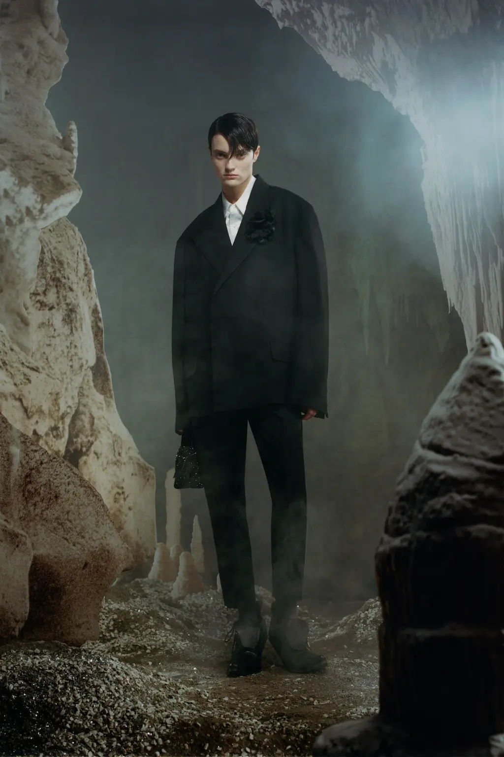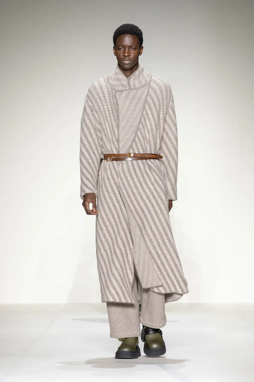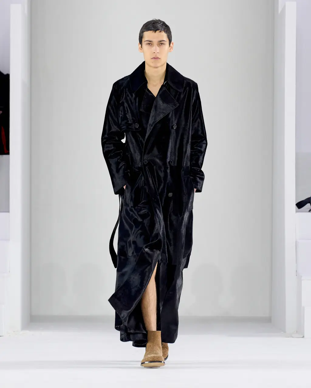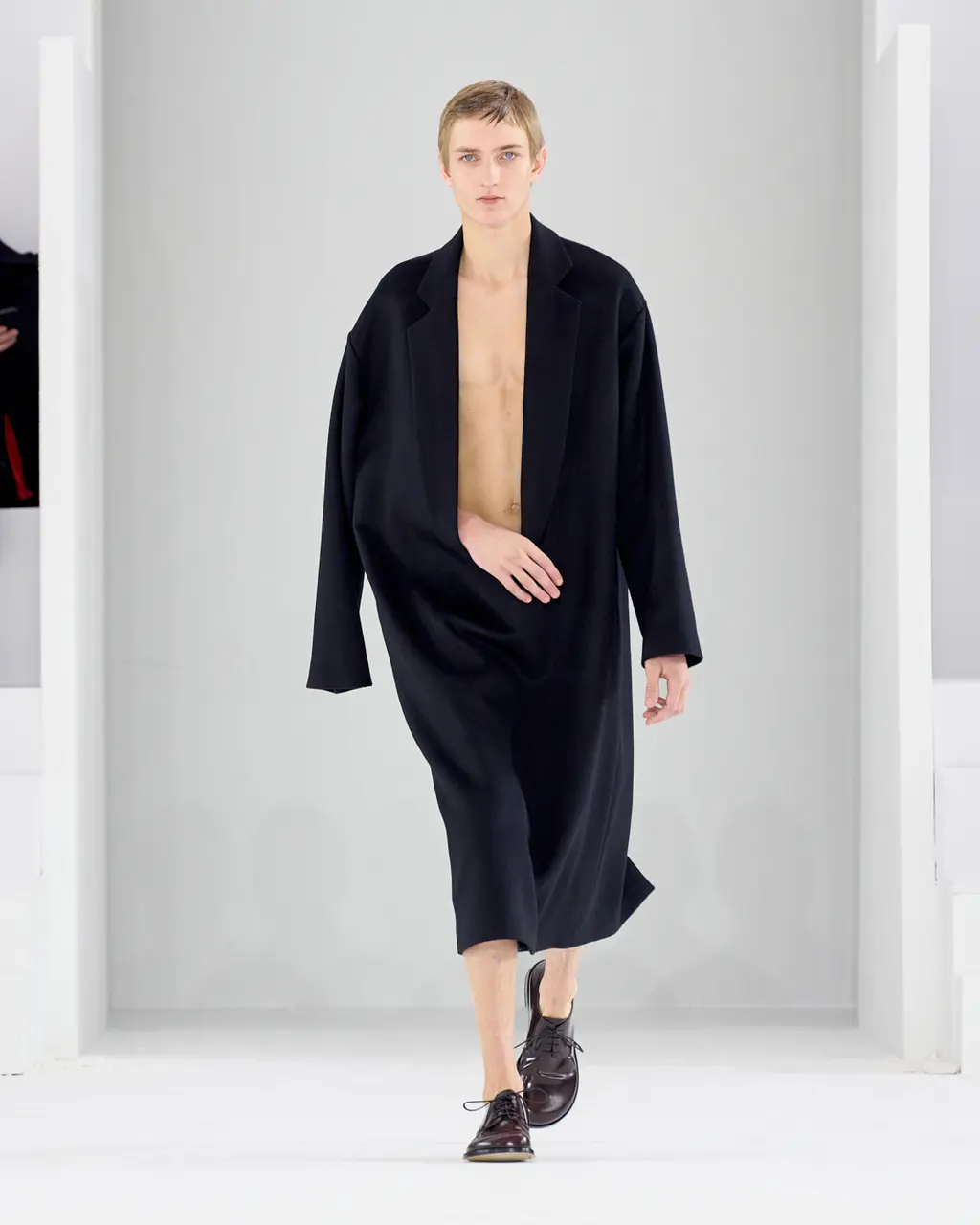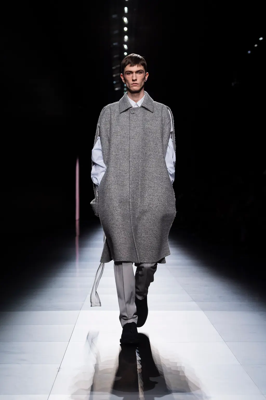 Anderson also talked about a move away from excessive styling and the idea of reducing things down to a singular garment which allows him to create a narrative throughout the rest of the show. This season it was his opening look – an overcoat designed with a sling-like armrest creating a silhouette which mirrored those seen in classical paintings.
