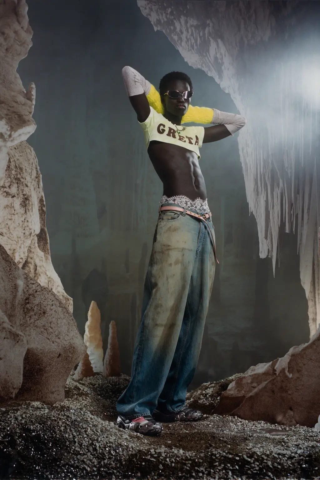 The extra-long sleeves, designed to “recall the over-extending limbs of the superhero trope.” Also perfect for the freezing Paris weather.
