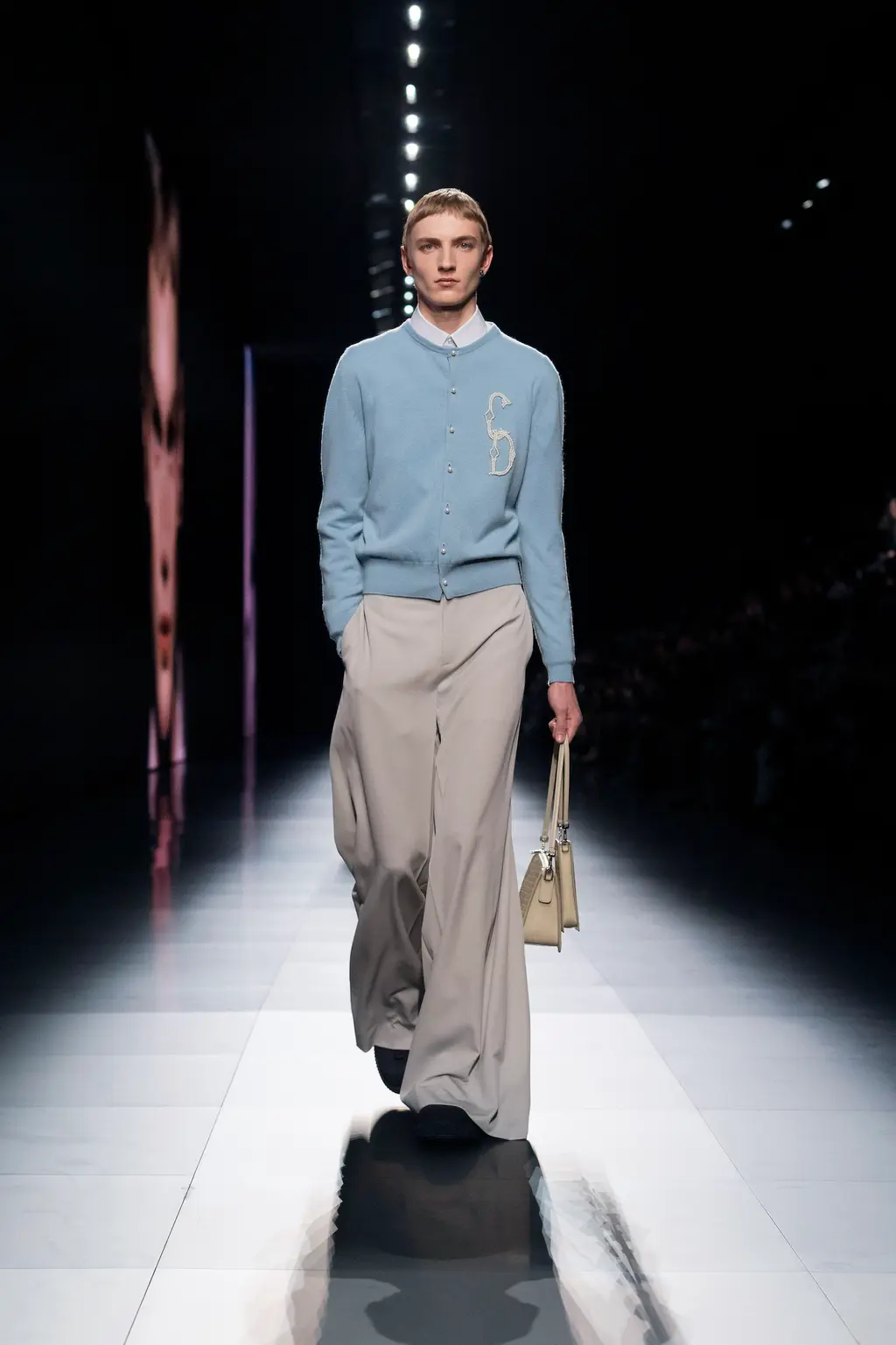 “He’s a man who combines private and public,” De Vincenzo continued. “Most of the outfits are a combination of something that is very comfortable but at the same time, eccentric. I think that is the key for my future with the brand.”