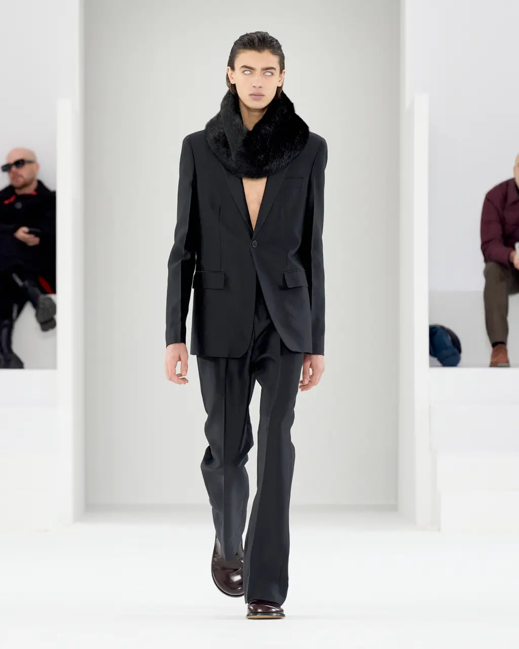Pupil-less people. Many models wore all-white contact lenses which made for an off-kilter mood.