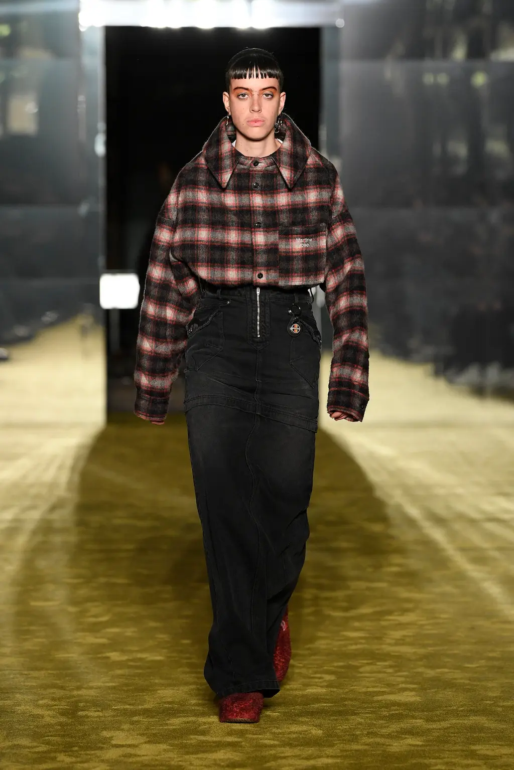 “I always like things that feel familiar but slightly off. I had this idea: I was looking at doll’s clothing and how you can never get form to fit a doll. So, we were looking at the structure with canvassing or wadding or shoulder pads.” We liked what appeared to be Western-style fringing on some of the jackets, which Martine told us was more inspired by the idea of putting something through a shredder (feels like a very Martine way to put it). Oh, and there were some great UGG clogs that appeared to have been dyed to match the louche, nightclubby feel.