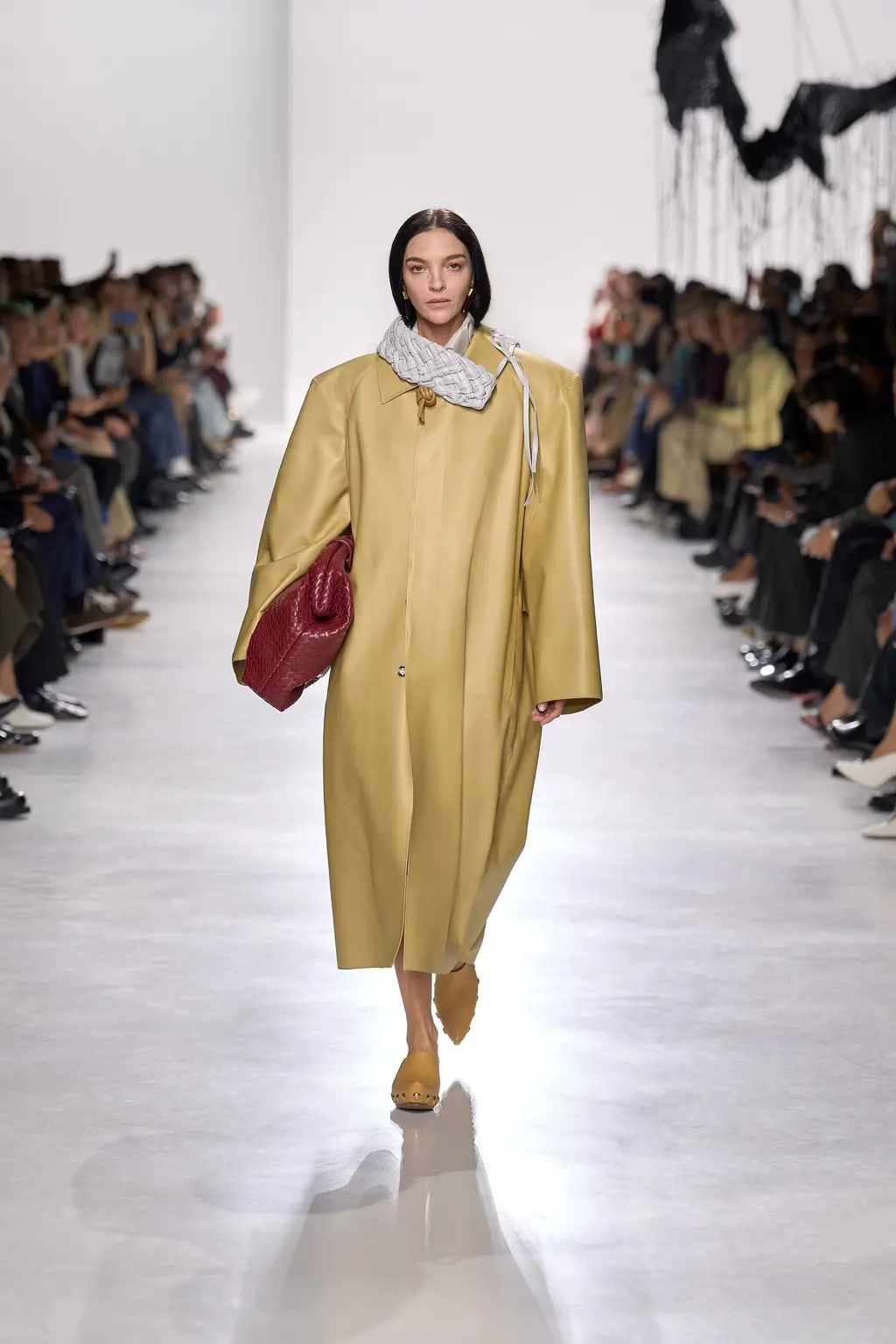 Louise Trotter’s Bottega Veneta debut was the most anticipated show of MFW. Small indications of Louise’s Bottega era were woven into the “Craft is our language” ad, and on Euphoria star and ambassador, Jacob Elordi, who has worn Louise’s Bottega at Venice Film Festival. We were teased, and it was worth the wait. The Sunderland-born designer led with simplicity, sending out a monochrome look accessorised with an overcoat and leather knots, before things really started to heat up: there was an off-the shoulder leather dress, suede jeans, jumpers with padded shoulders. Jaws dropped – mine included – when “sweaters” in orange, red and blue, made of recycled fibreglass, looked like fur, free-flowing and ready to spring to life on the catwalk. Nina Simone’s Wild is the Wind soundtracked, as voluminous leather trenches, ankle strap heels, and exaggerated silhouettes closed a show that swung the pendulum between familiarity and reinvention. A worthy appetiser for Paris.