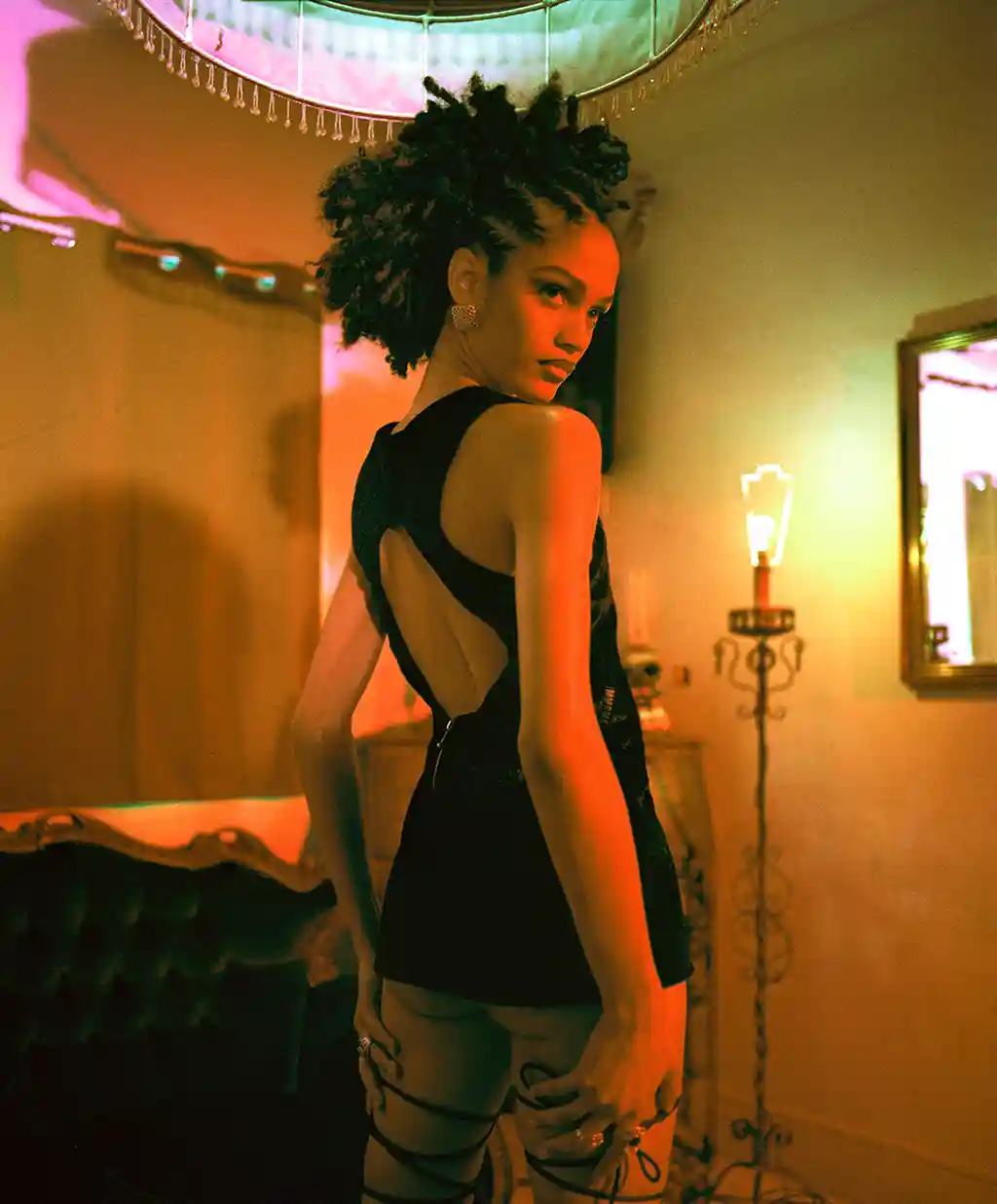 The accompanying photos explore isolation and intimacy, and were shot in the home. “It’s a space to connect with others and yourself,” explains Harvey. “There are moments there of passion, uninhibited sexuality and seductiveness accompanied by moments of introspection, contemplation and redemption.” The shoot celebrates Black bodies while simultaneously questioning a narrative that Harvey was sick of hearing in the industry.