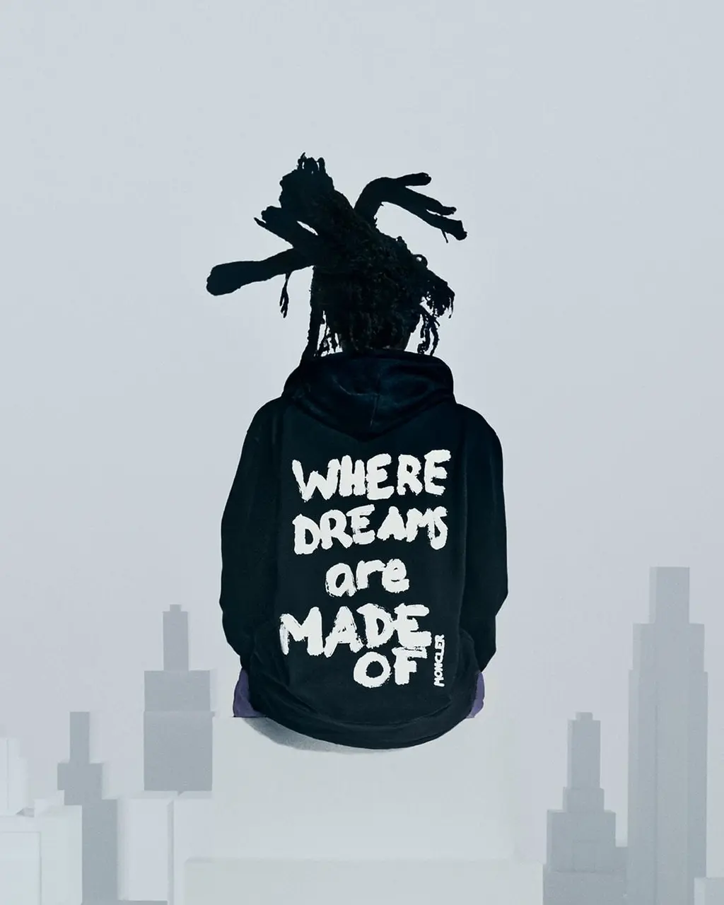 Now, the city’s at the epicentre of her new release with Moncler. Daring us all to dream, it cores the Big Apple and blitzes it into an aspirational collection spanning jackets, tees, trousers, shoes and accessories. It’s filed under the Genius tag, Moncler’s ongoing collaborative project which sees an array of creatives across all disciplines work with the French fashion house. Keys herself performed at last month’s mega Moncler Art of Genius presentation, singing in front of thousands of the brand’s fans, cutting-edge creatives and global stars at Olympia London.