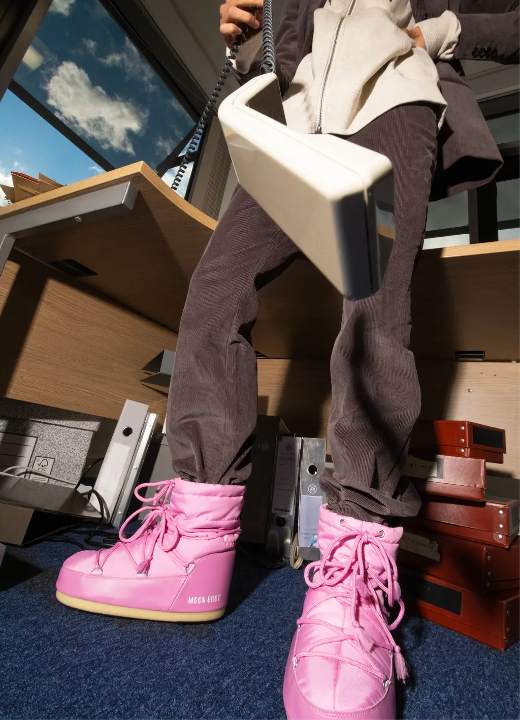 COOMES AND MATT EMPRINGHAM, trousers MARTINE ROSE, socks stylist’s own and shoes MOON BOOT