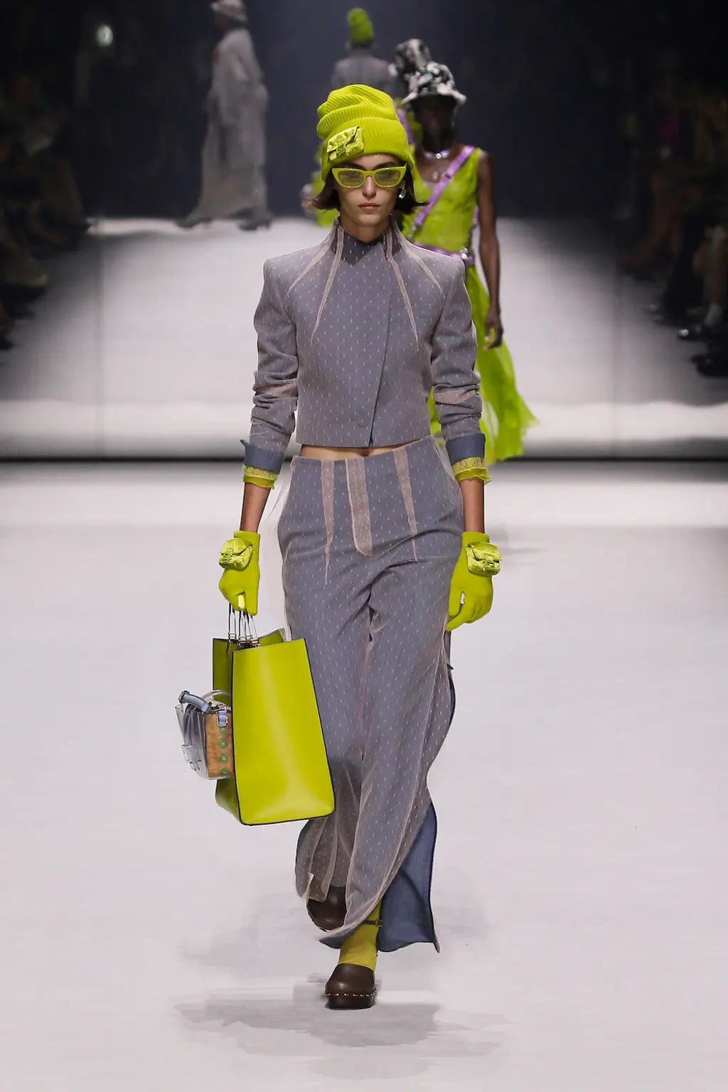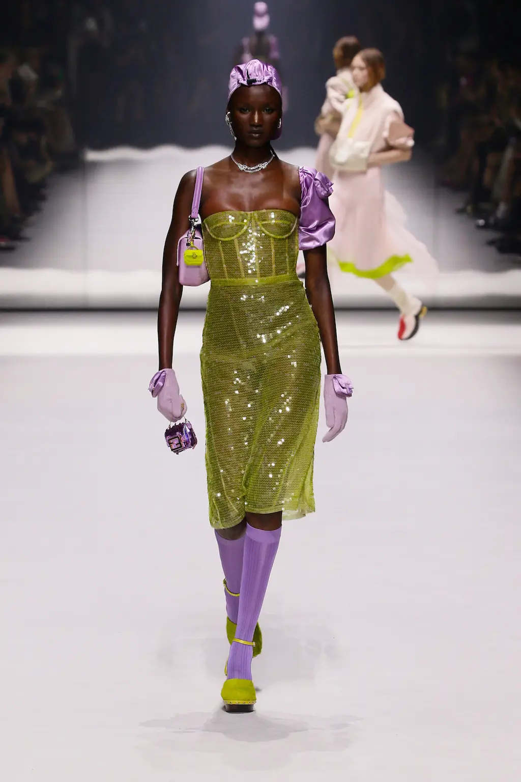 Back in 1997, Fendi’s Baguette bag became a rip-roaring symbol of hedonistic excess and anti-functional cool. 25 years on, and Silvia Venturini Fendi’s design reimagined itself for the digital age, as part of multiple guest designs from friends of the Italian house, and markers of the Baguette’s enduring legacy.