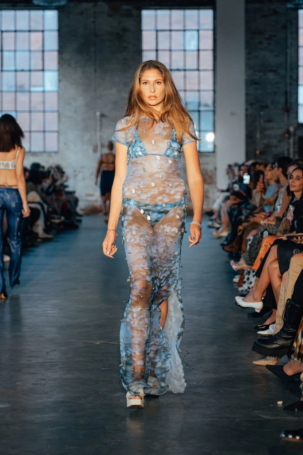 Taking place at the Skyline Drive-In movie theatre in New York’s Greenpoint on Sunday night, the rain crashed down on a show space decked entirely in aluminium foil; a reference to Warhol’s Factory studio, in which visitors could see works come together in real time.