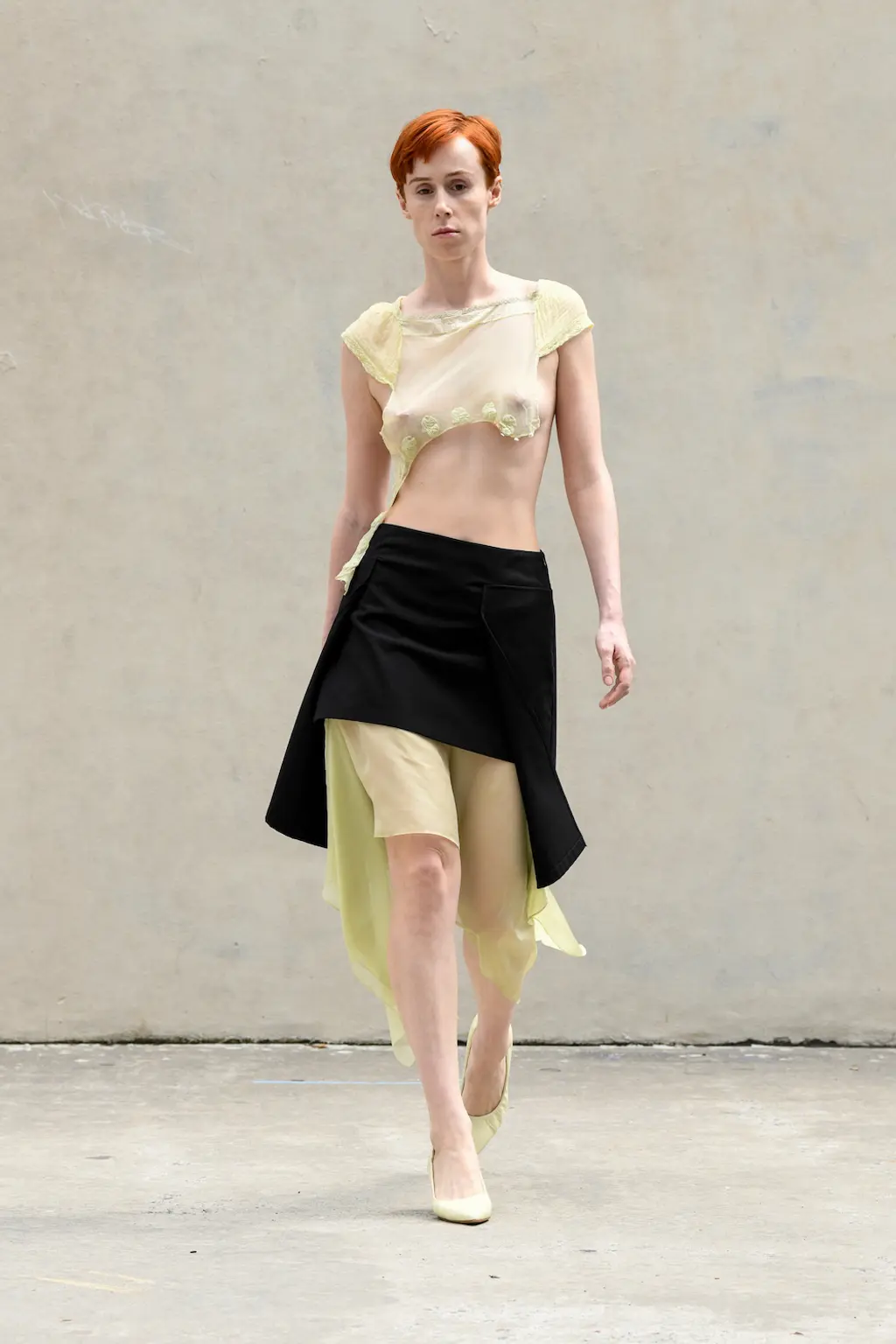But it’s the moments that feel like undressing – white stockings, a one-legged trouser-skirt, shirts buttoned open – that play to Zadeh’s strange, poetic understanding of turning fleeting moments into the main event. Here, the balminess of a holiday romance comes alive – and it’s pretty intoxicating. TS