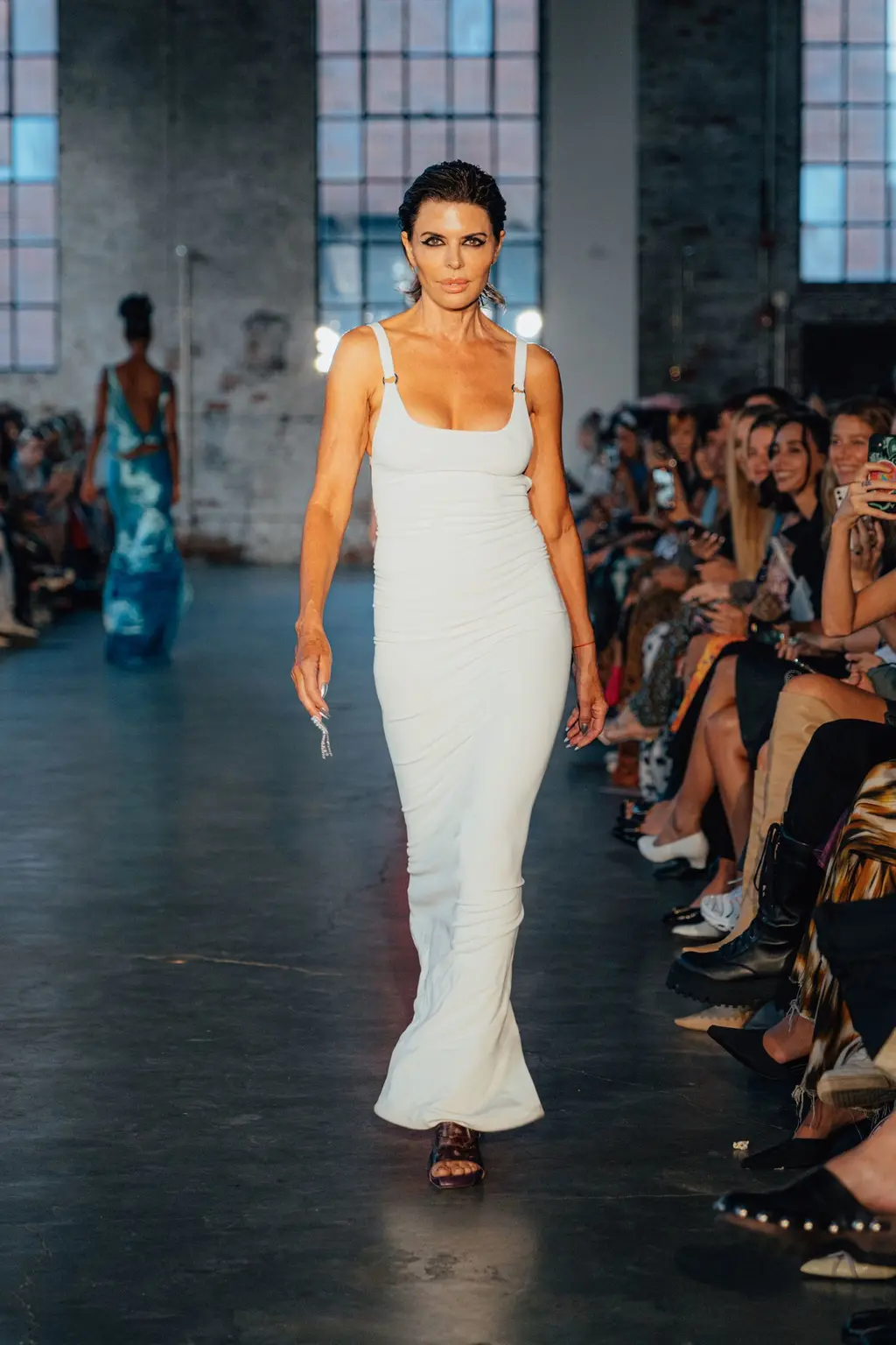 Lisa Rinna stole the show at PRISCAVera, which was full of humour, great casting (by London-based Madeleine Østlie) and sex-appeal. The Real Housewives of Beverly Hills star, who took to the runway in what MailOnline will undoubtedly call a “figure-hugging white dress”, said that she planned to walk her first show “as if I had a shot of tequila” – a sense of fun and confidence we’ve come to expect from the brand founded by Prisca Vera Franchetti in 2015.