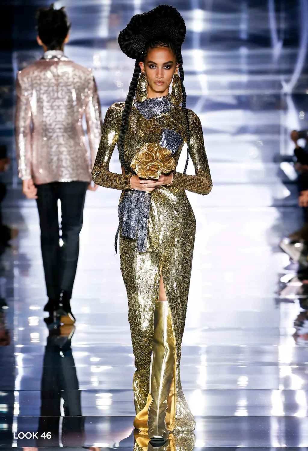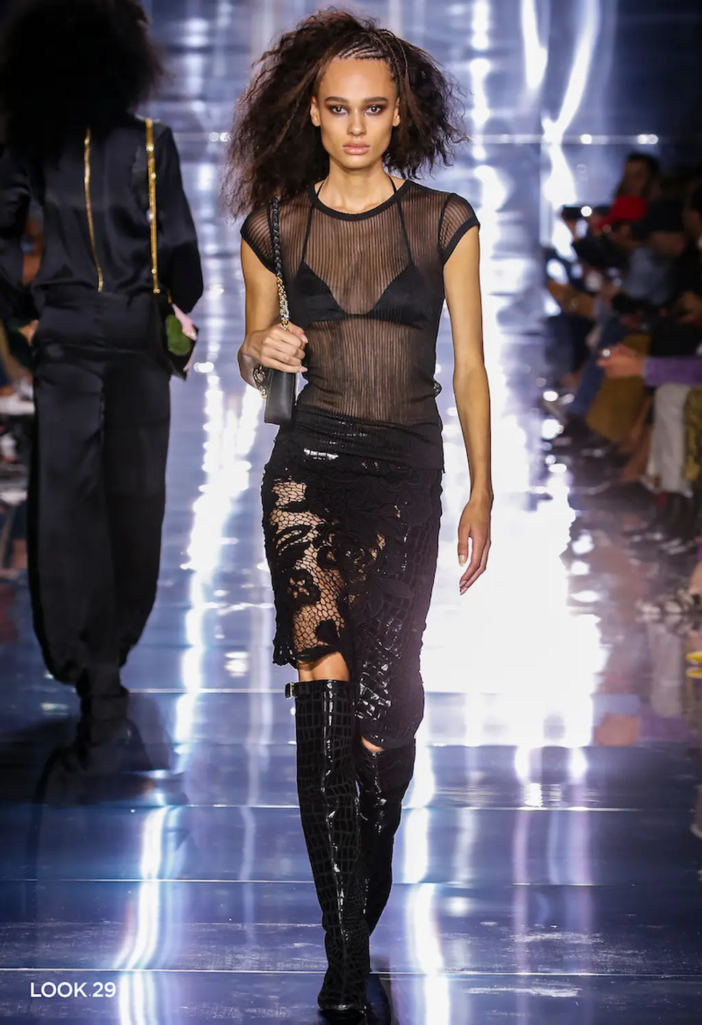 Sex! Glamour! Glitter! Serious struts! Madonna on the front row, Chris Rock on the front row. A massive disco ball. Massive disco music. Massive hair, massive earrings, massive models (the Hadid sisters closed the show). Safe to say, Tom Ford delivered a heightened end to NYFW. It was a glitzy throwback to the past, sure – most notably the lace ‘n’ lingerie of his Gucci years – but by God he knows how to put on a show. London, over to you.