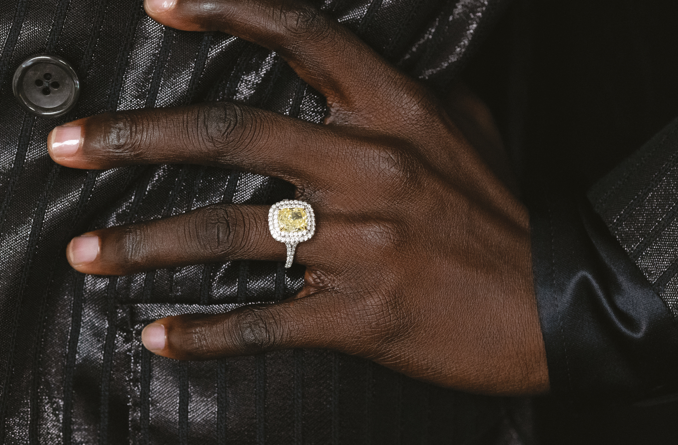 Piath wears blazer TOM FORD and ring TIFFANY & CO