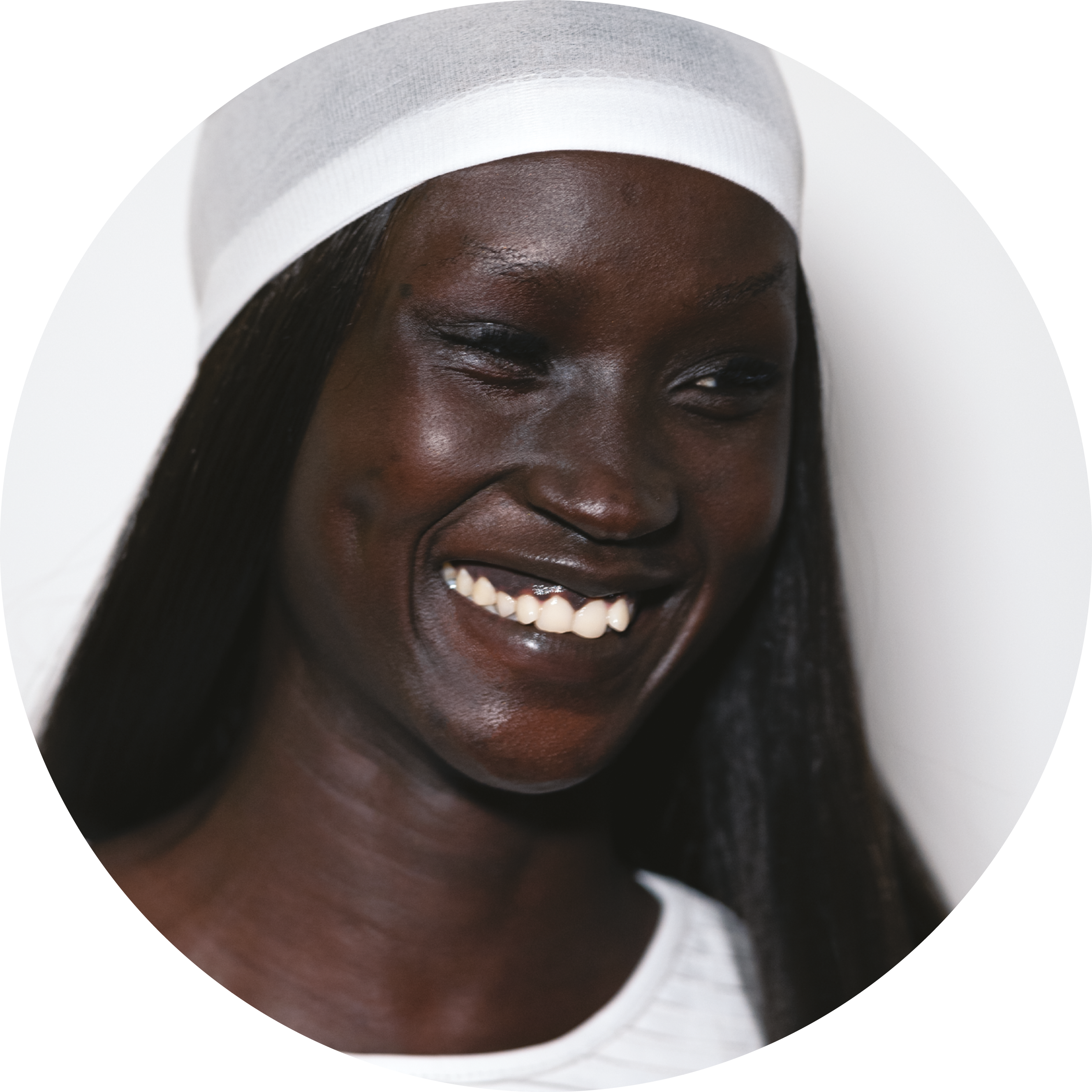 HAIR Kota Suizu MAKE-UP Alice Dodds SET DESIGNER Tom Schneider MANICURE Ella Vivii CASTING DIRECTOR Emma Matell TALENT Achai at PRM, Akolde at Established and Piath at Duo Model Management PRODUCER May Powell STYLIST’S ASSISTANTS Ada Matylda and Sian Cuthbert