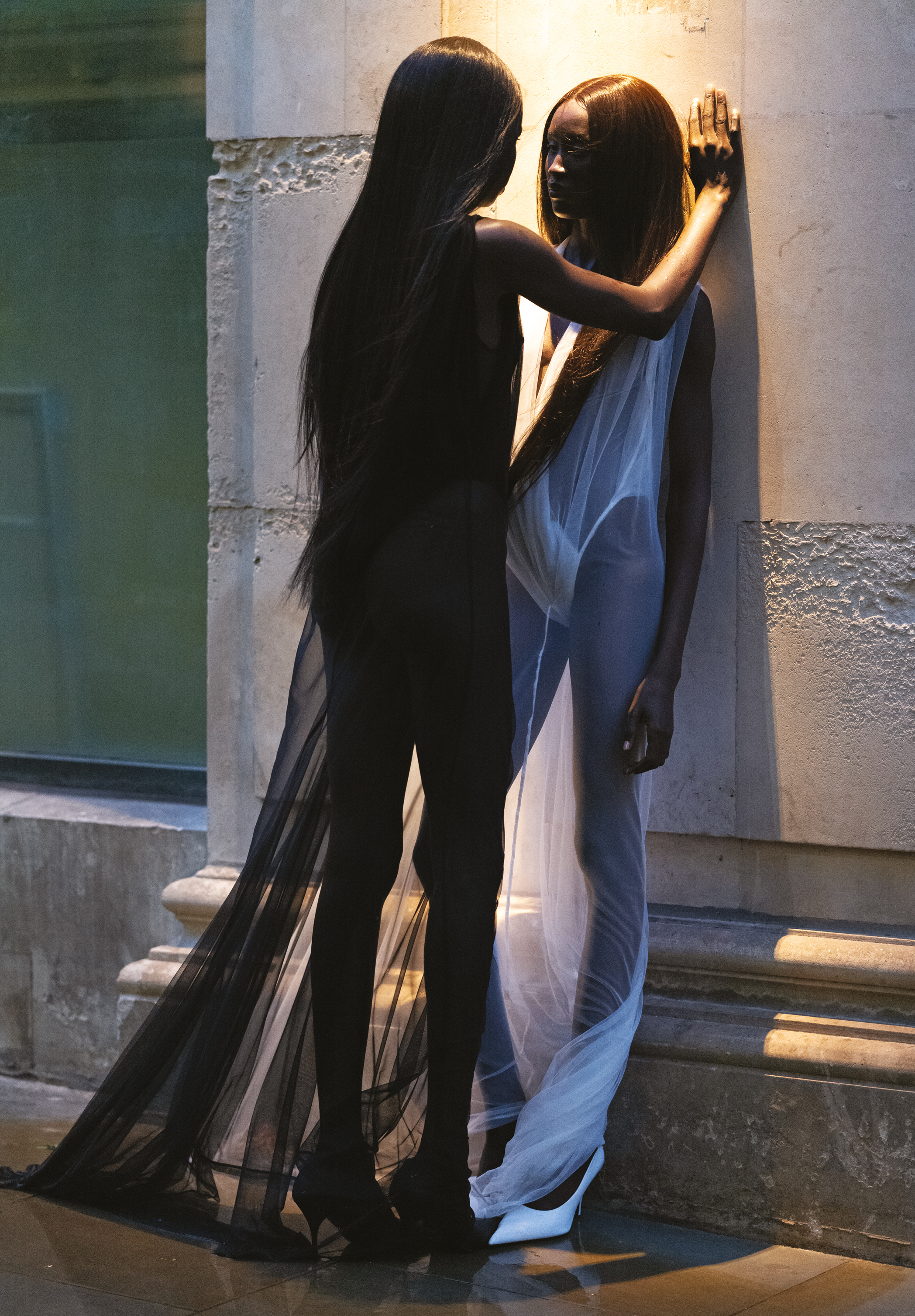 Piath wears dress Y/PROJECT and shoes PRADA. Achai wears dress Y/PROJECT and shoes PRADA