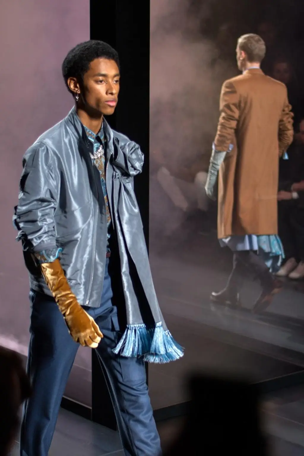 Pearls, evening gloves, (faux) furs, crystals, diamantes, velvet: these details are serving up a new and sumptuous take on masculinity for 2020. As showcased at the first round of shows of the decade, which concluded in Paris on Sunday, a modern vision of opulence for men is shining bright, starting with AW20. Magpies, rejoice.