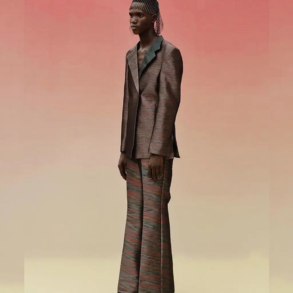 Since it was launched, Orange Culture has continuously pushed against the boundaries and ideals of traditional masculinity in conservative Nigeria through its riotous approach to menswear design. With it has come praise: in 2014, LVMH selected Orange Culture for their Young Fashion Designers Prize, where 1221 designers were whittled down to 29. A year later, Oke-Lawal displayed his designs at the International Fashion Showcase organised by The British Fashion Council during London Fashion Week. And before the likes of Lupita Nyong’o, Chimamanda Adichie and Dua Lipa wore Orange Culture, it had become the first African brand nominated for the Woolmark Prize, where past finalists include Matty Bovan, A‑COLD-WALL* and Bethany Williams.