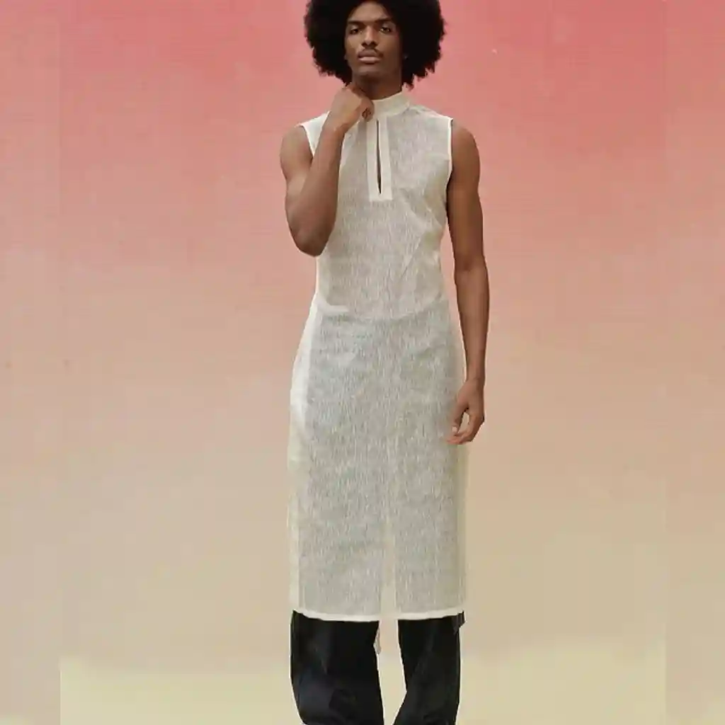 “When I first started my brand, the reception wasn’t great at all,” Oke-Lawal says. “People hated the idea of me questioning gender stereotypes and confronting them with androgyny. I cried after my first collection.” But after “a few tears”, the designer decided that the conversations he was initiating were vital in raising awareness on LGBTQ+ communities in his hometown. He decided to plough on.