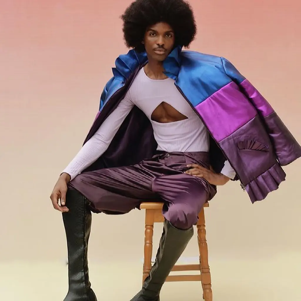Oke-Lawal’s work features vibrant colours, plunging silhouettes and the subversion of traditionally feminine cuts such as fitted crop tops, oversized pussy bows and sequinned vests. But Nigeria’s conservative political outlook on sex, gender and queerness has meant Oke-Lawal has had to deal with daily death threats via social media, emails and in person. As it stands, there is no legal protection for LGBTQ+ people in Nigeria and gay sex is punishable by up to 14-years imprisonment – in some parts, death by stoning.