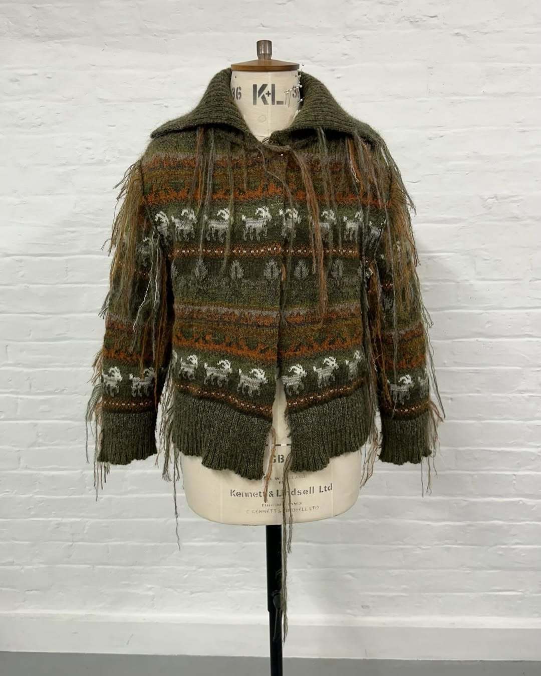 Oscar points out a one-seam caped blazer woven in French tweed, a meticulous double-breasted overcoat collared with detachable reindeer fur and a handful of miniature leather rosettes that will be sprinkled throughout the season’s offering. The bulk of the clothing is knitwear; Italian, Chinese, Mongolian and Irish (Donegal) yarns do the heavy lifting. Silhouettes favour traditional British tailoring by way of safari jackets, military garb, dress shirts and draped cummerbands. PJs are printed with vintage toys sourced on eBay (Oscar jingles a box of children’s lead farm animals on his desk).
