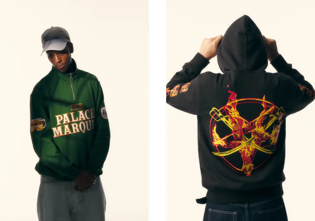 To commemorate Palace’s favourite activity after, er, skating, the brand has also made its very own pub, The Palace Marquis, and stitched a logo of it on a half-zip fleece, to be worn as you enjoy a sweet, sweet pint of Palace Artois. Mwah.