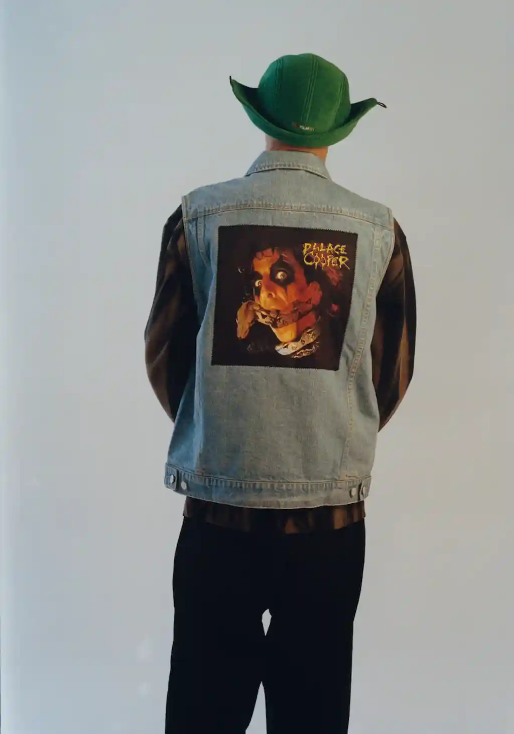 And what better way to spice up your daily supermarket run than by wearing a sleeveless denim jacket with American rock legend Alice Cooper’s (or, should we say, Palace Cooper’s) infamous 1986 Constrictor album cover stitched on the back?