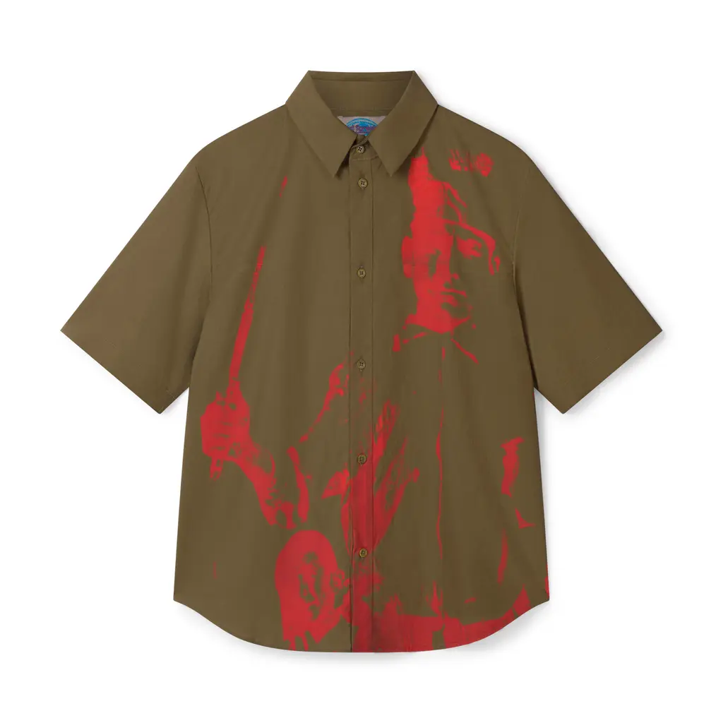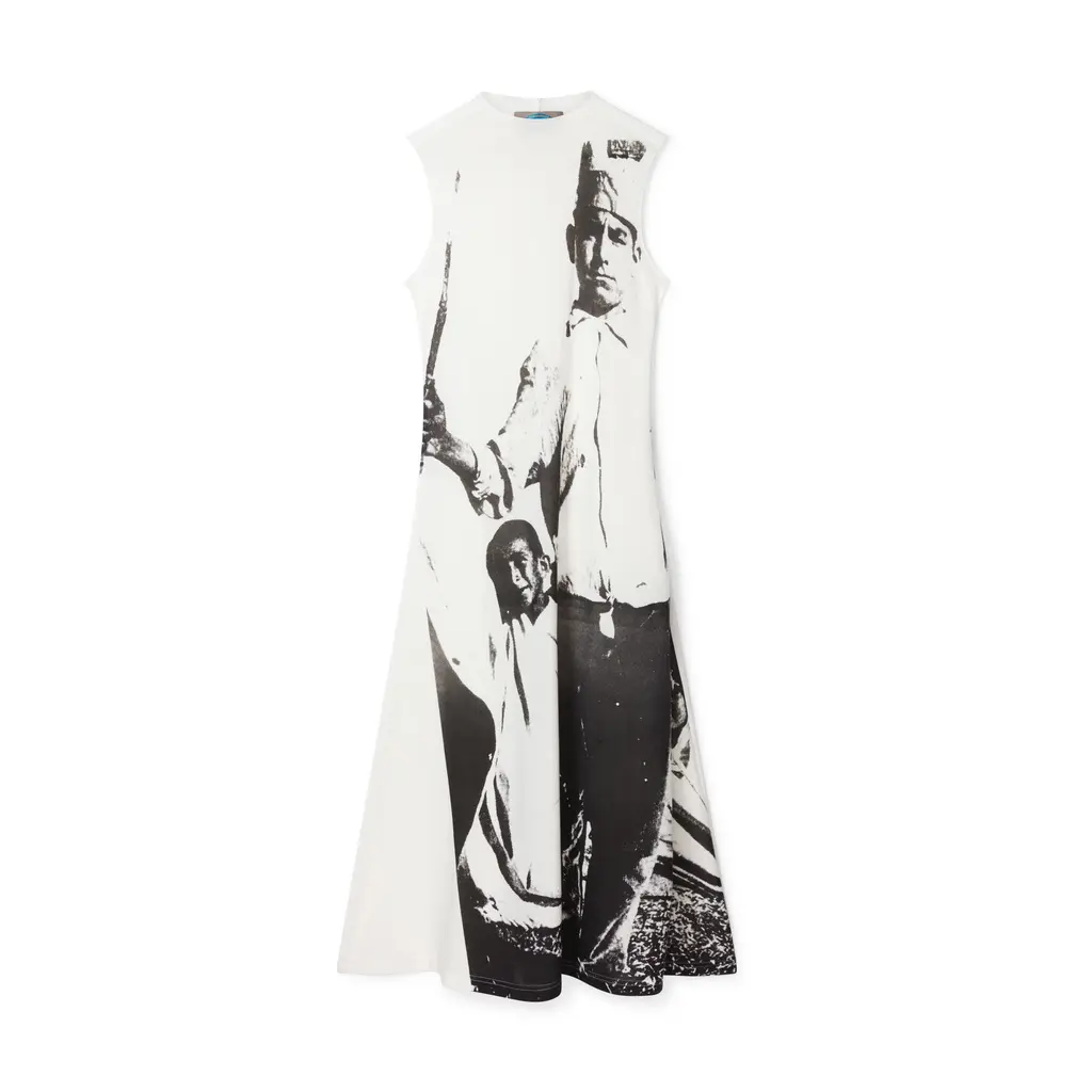 “Can my mum or my friends spend a grand on a piece of clothing? No, they can’t,” she says bluntly. “Blind Foresight is for people who are interested in quality clothing, which is made exactly the same way as I would make my main line, but it’s more inclusive – the prices are accessible.” With quality graphic T‑shirts at £65, a printed white jersey dress at £100 and, at its highest price point, a khaki military-influenced dress at £198, she’s not wrong.