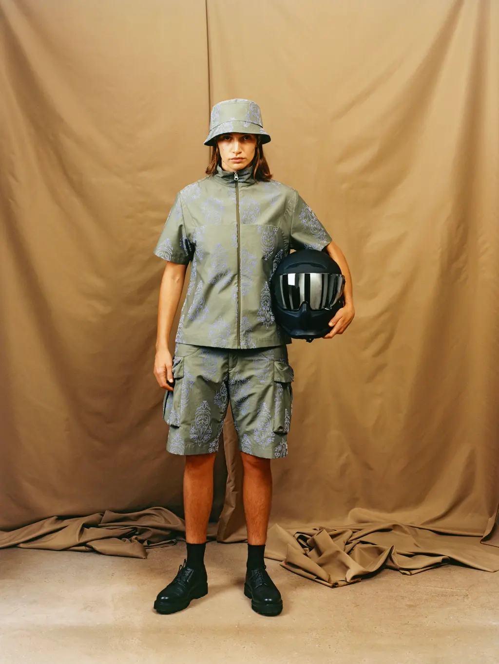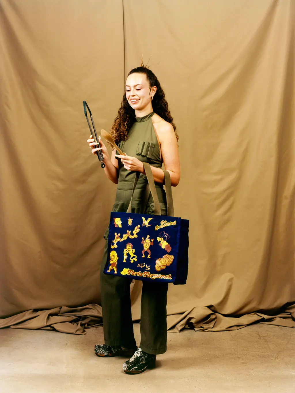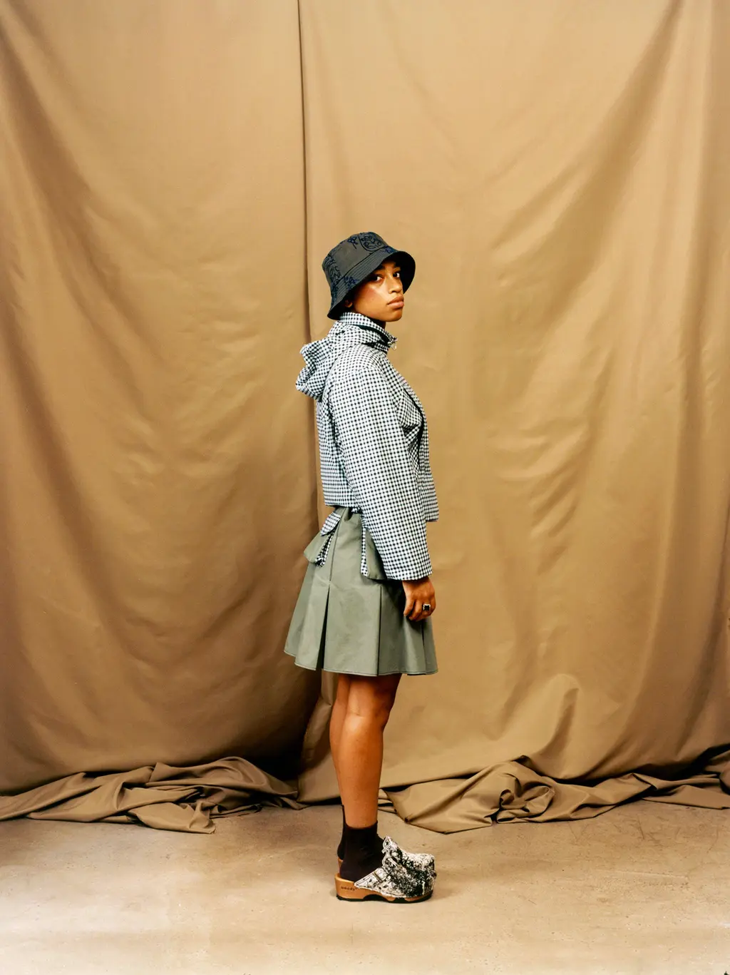 Complete with hand-made clogs, sturdy walking boots, rave-ready bucket hats and pockets a‑plenty, Farzaneh urges you to utilise the outdoors. Break out of the four walls you’ve been suffocating in. Find a hobby, text your mum, reach out to your friends, go to good parties and revel in the fresh air. Above all, have a good time.