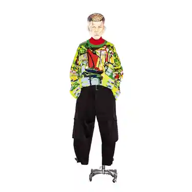 As if the loudly-coloured impressionistic sailing scene on this thick-knit jumper wasn’t enough, it also comes in a cropped, sexy, slouchy fit.