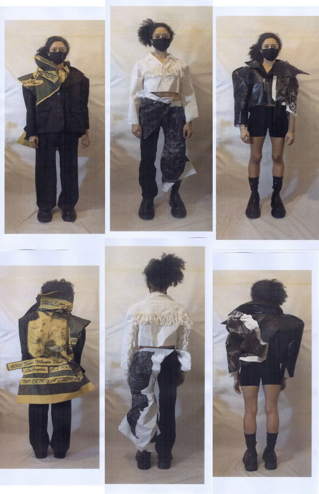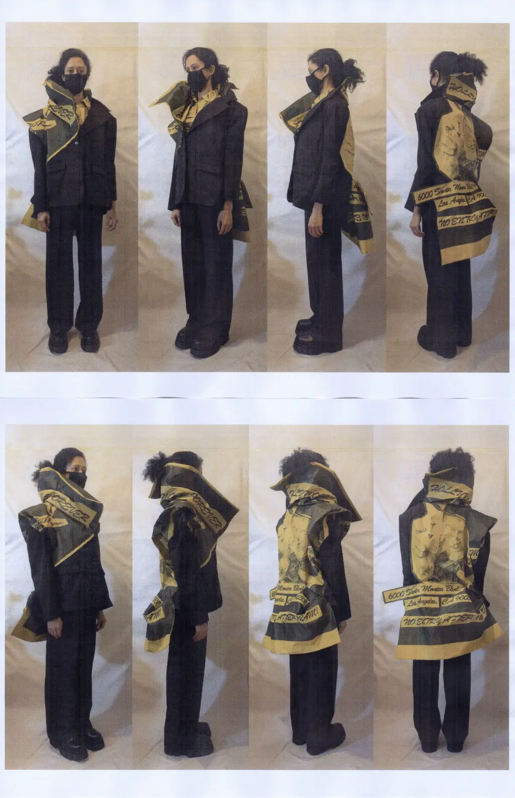 I create fitted yet loose garments to explore the contrasts and tension between artistic heritage and superficial modernity.