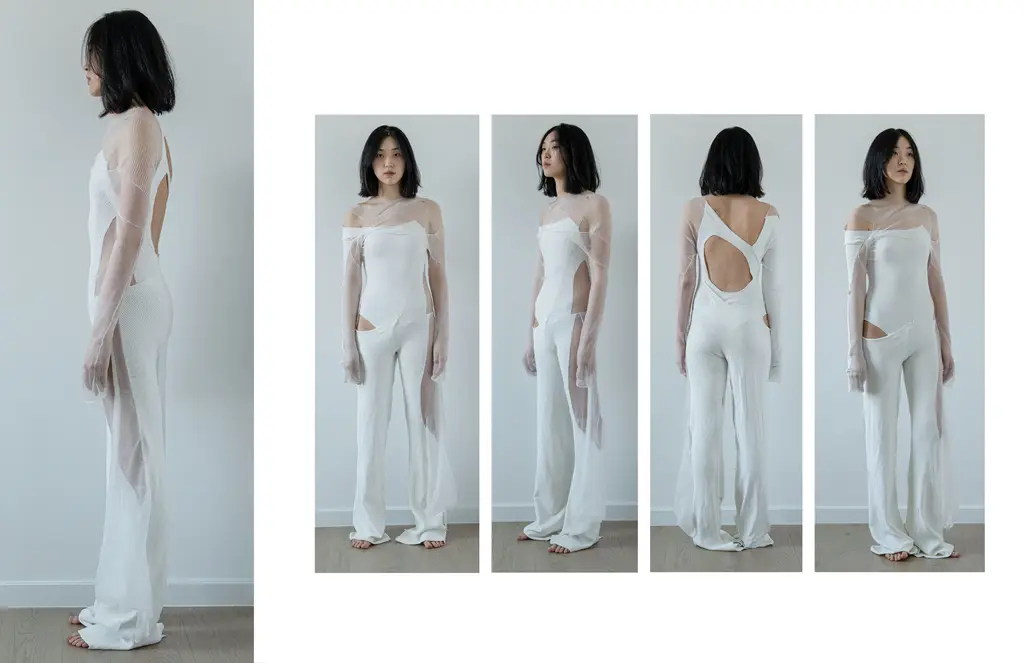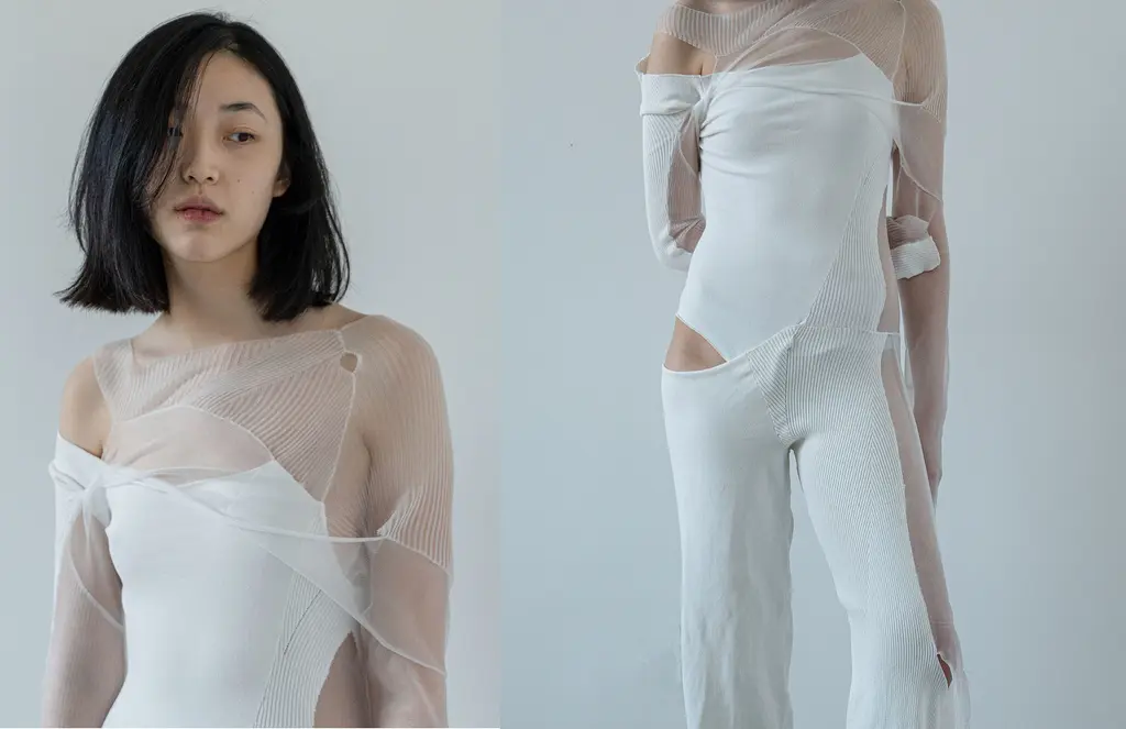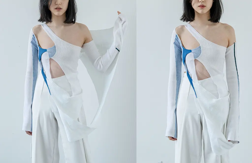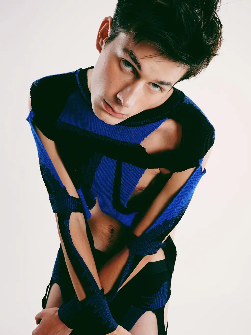 I am approaching knitwear as the inner structure of a garment, allowing garments that are typically precisely formulated, to be freed of these pre-designed silhouettes.