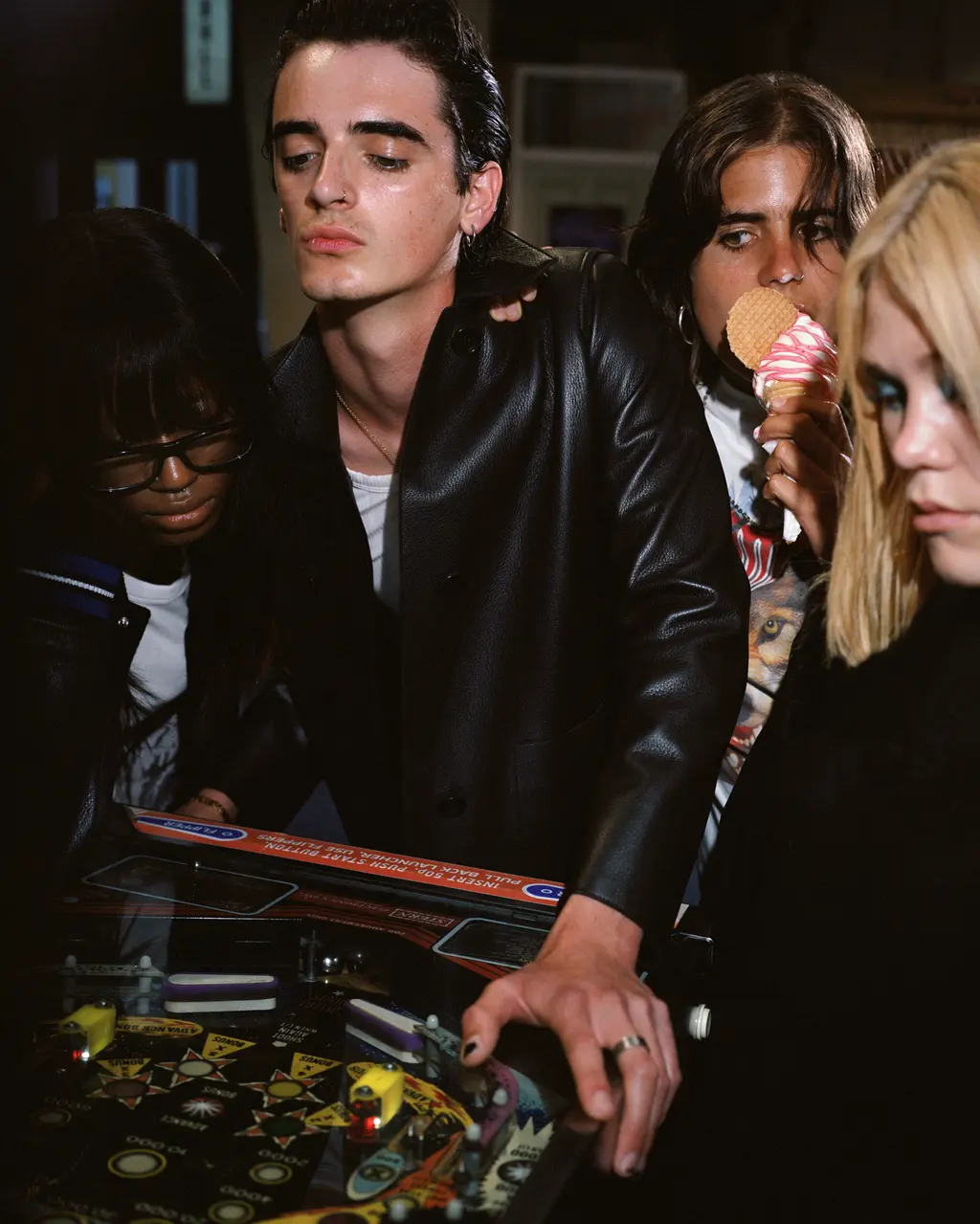 Esther wears jacket TOMMY HILFIGER and top stylist’s own Will wears jacket AKRIS and top CALVIN KLEIN Morgana wears T‑shirt ARIES ARISE Ruby wears hoodie CHARLES JEFFREY LOVERBOY