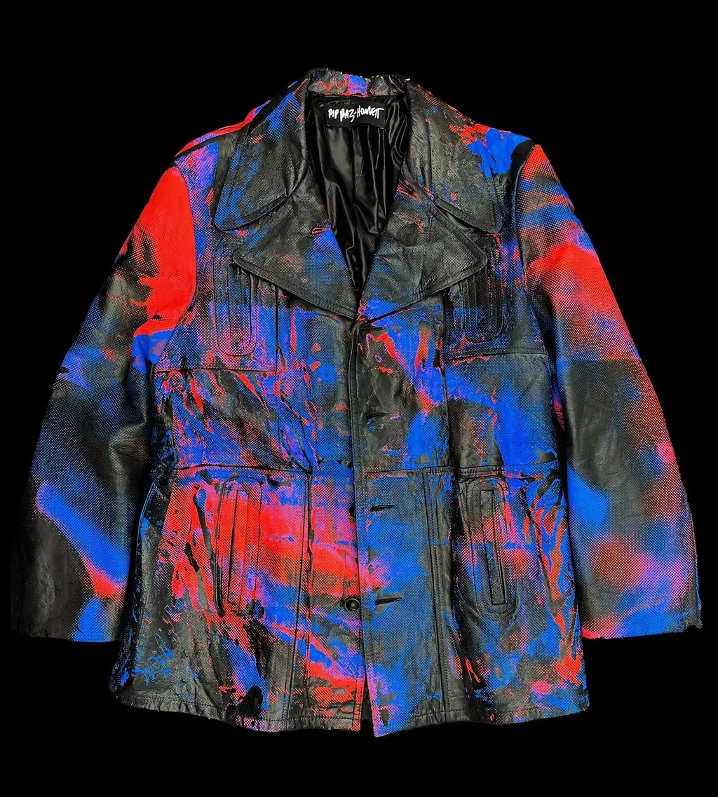 There’s a tactile element to Paz-Howlett’s designs, too – he uses heat-reactive technology. It’s mind-bending stuff, involving £200 pots of inks, baking a pair of pants in a 200-degree oven and multiple washes. But once the labour of love is over, the result is surreal, with X‑ray-style hands plastered onto a full-length skirt like a touchy-feely embrace on the dancefloor.