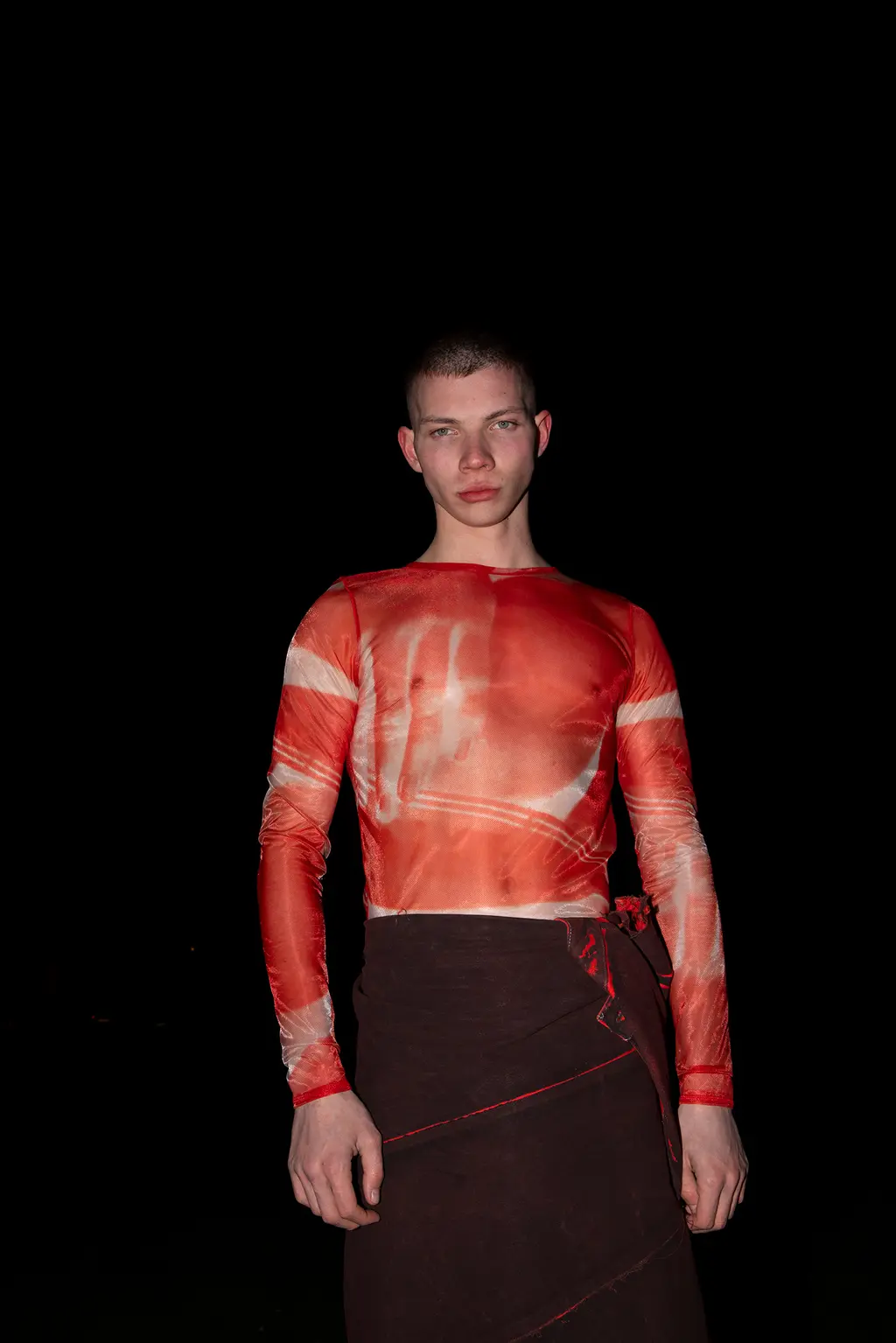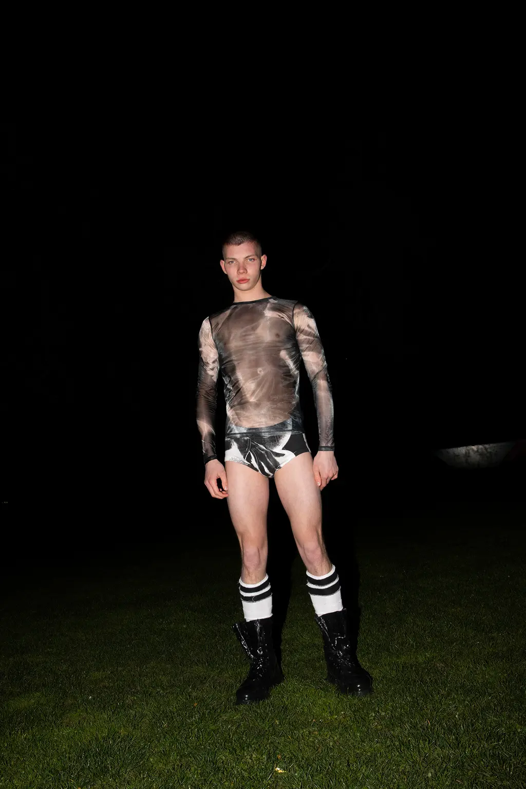Off the Rails: Gay porn, ’70s disco and heat-reactive tech are the magic ingredients in this British designer’s work, who recently graduated from Central Saint Martins’ MA Fashion course, and once worked as a print designer at JW Anderson.