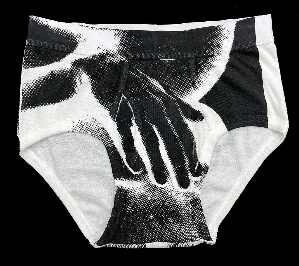 Back in February, when Central Saint Martins presented their annual MA Fashion collections during London Fashion Week, the runway got marginally sexier when MA Menswear student Pip Paz-Howlett presented his looks. His designs, styled as though models were caught mid-undressing, featured handprints slapped onto the back of white Y‑fronts, fetishistic tube socks pulled to the knee, layers of acidic textures revealing limbs poking from underneath, and a crocheted jockstrap thrown in for good measure.