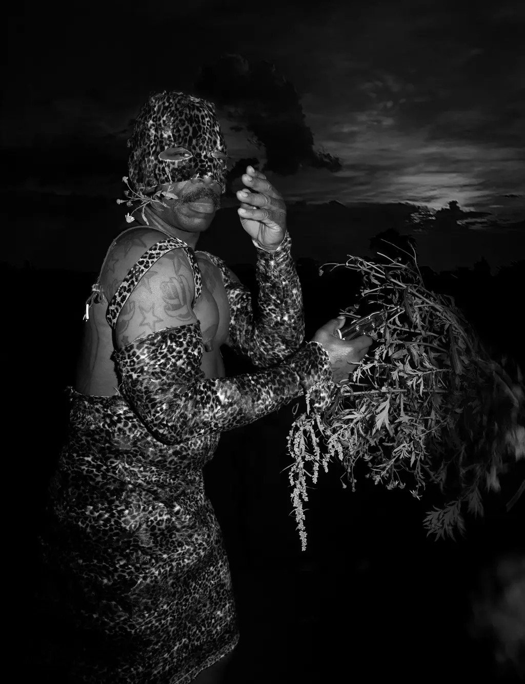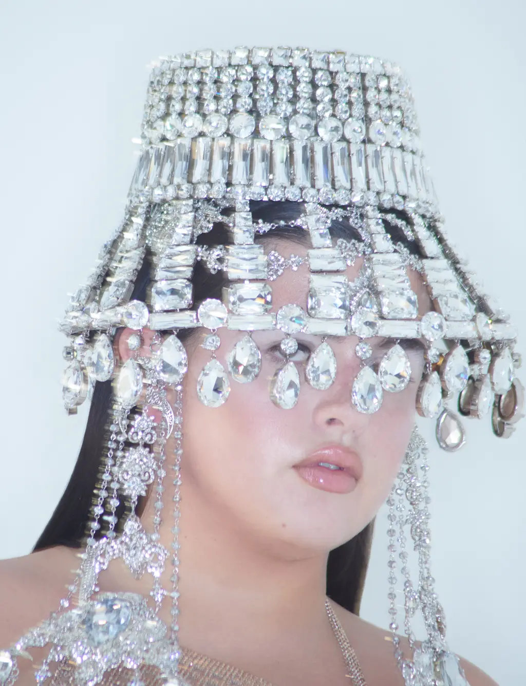 Isabella wears crystal cuff (worn as a headdress) and top LUDOVIC DE SAINT SERNIN and mask and earrings ANDREAS KRONTHALER FOR VIVIENNE WESTWOOD
