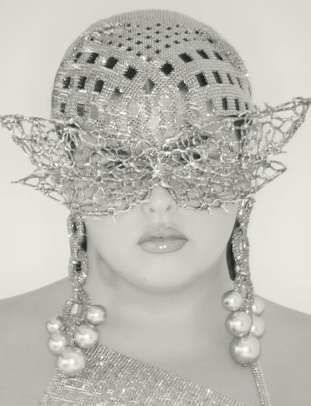 Isabella wears hat AREA, earrings GIVA JEWELLERY at ETSY.COM and top LUDOVIC DE SAINT SERNIN