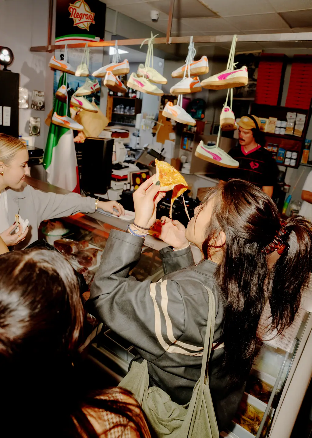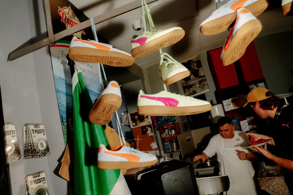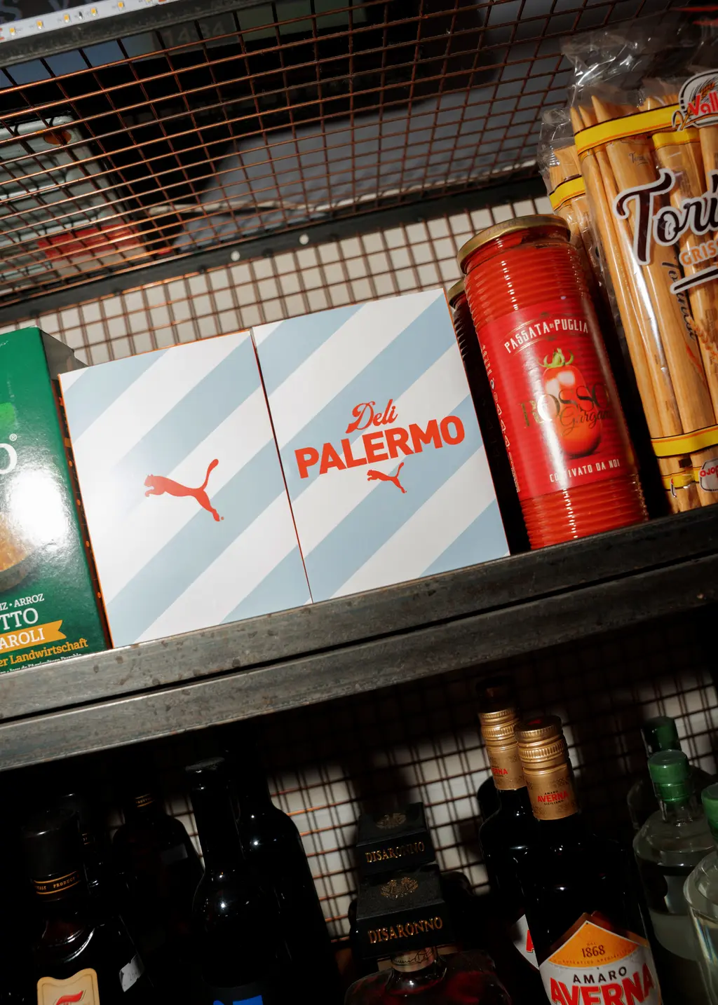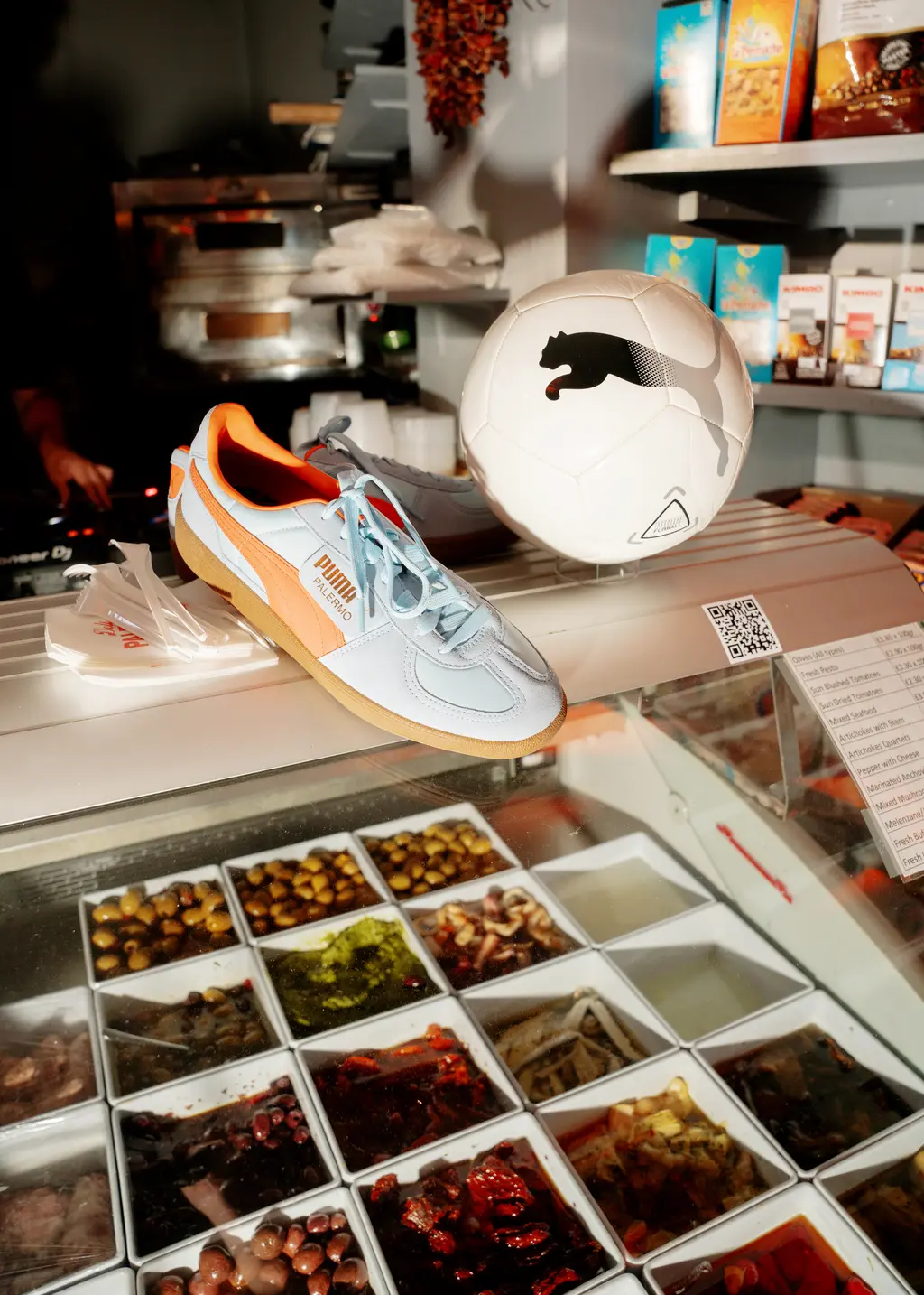 Imagine our delight, then, when we found out that PUMA was turning Terroni of Clerkenwell – London’s oldest Italian deli – into Deli Palermo on a Thursday night to mark the return of its legendary Palermo shoe. A mainstay of footie stadia back in the ‘80s, it’s now got two new box-fresh colourways inspired by Sicily’s fruit markets.