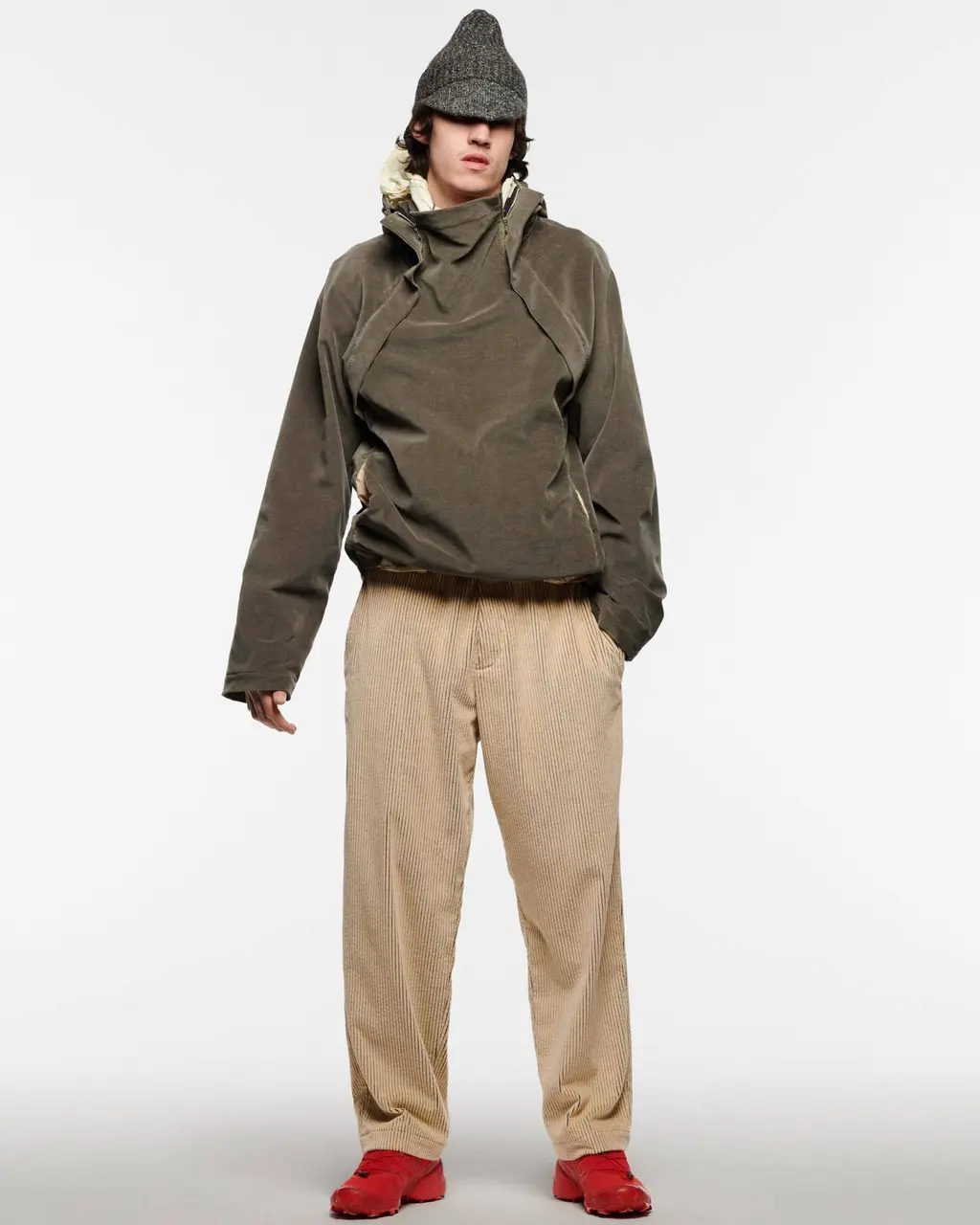 At the beginning, the duo kept things small, focusing on a six-piece collection that covered all the basics you’d find in a typical man’s wardrobe: a tracksuit, shirt, coat, outerwear jacket, trousers and a T‑shirt. What made the pieces stand out was their adaptable features, all coming with clever zips, removable hoods and toggles for fit preferences, which have become something of a signature for RANRA.