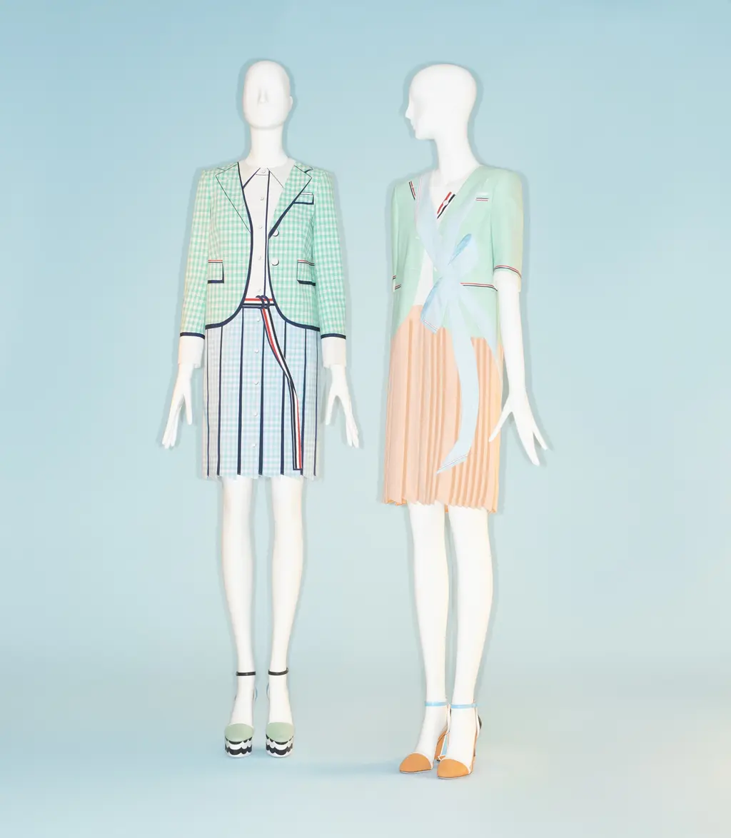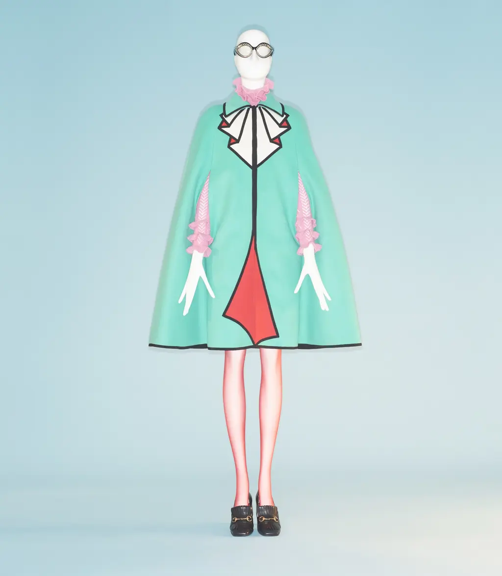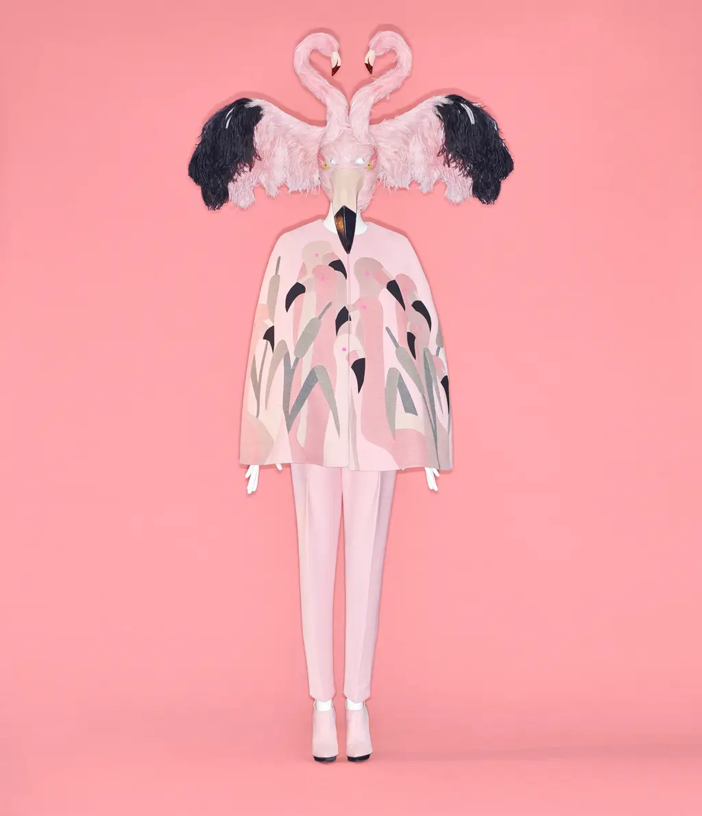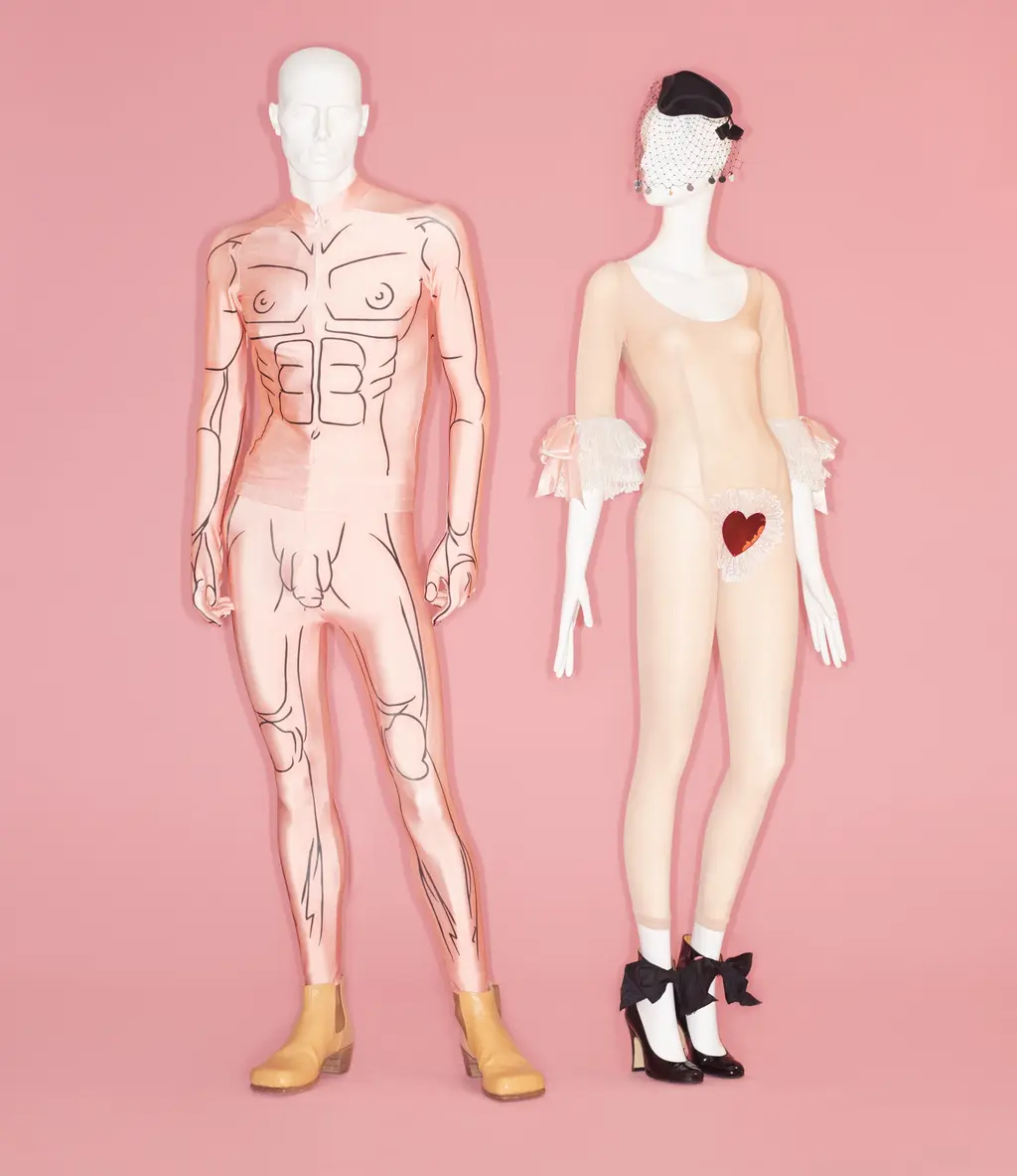 From trompe l’oeil and feathers to gender-bending and historicism, some of the most iconic designs of late 20th century fashion mix with some of the most creative today. There’s Margiela’s ruby tabi slipper, Marjan Pejoski’s swan dress worn to the Oscars by Björk, a Gucci logo suit by Dapper Dan, and additions by kitschy labels du jour like Vaquera, Pam Hogg and Moschino.