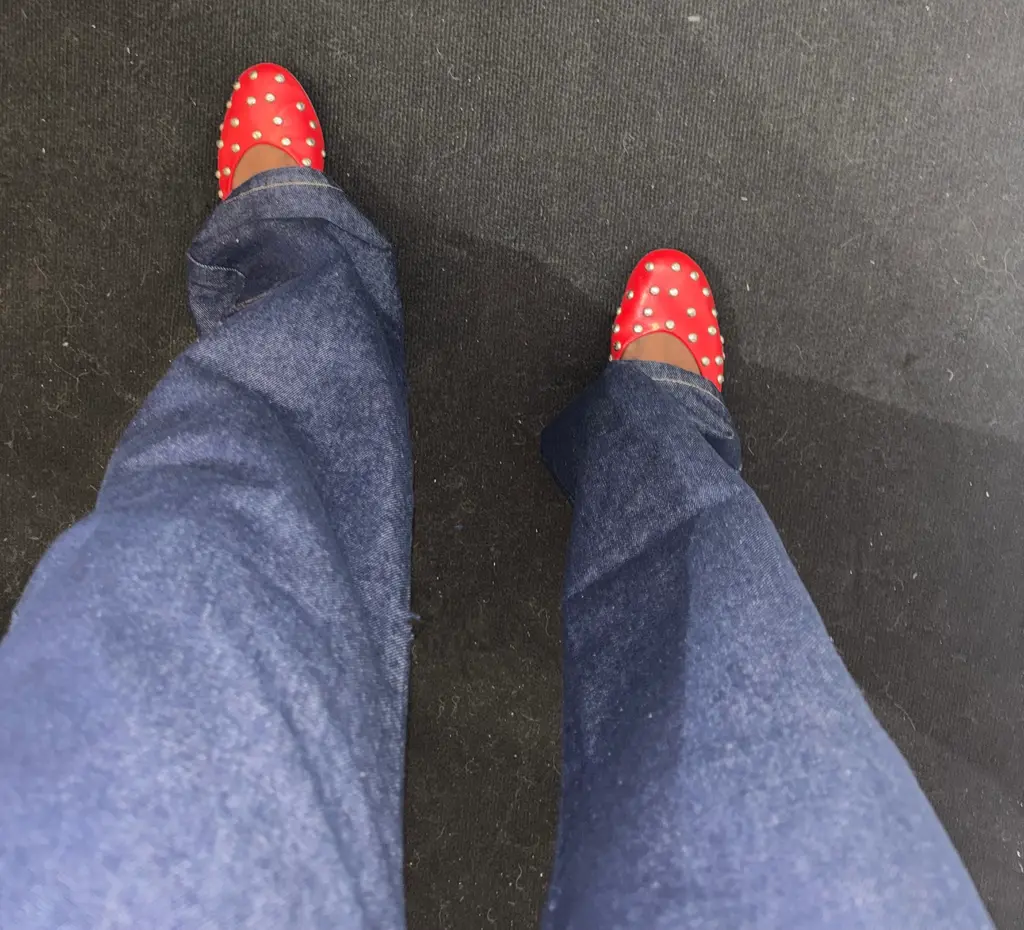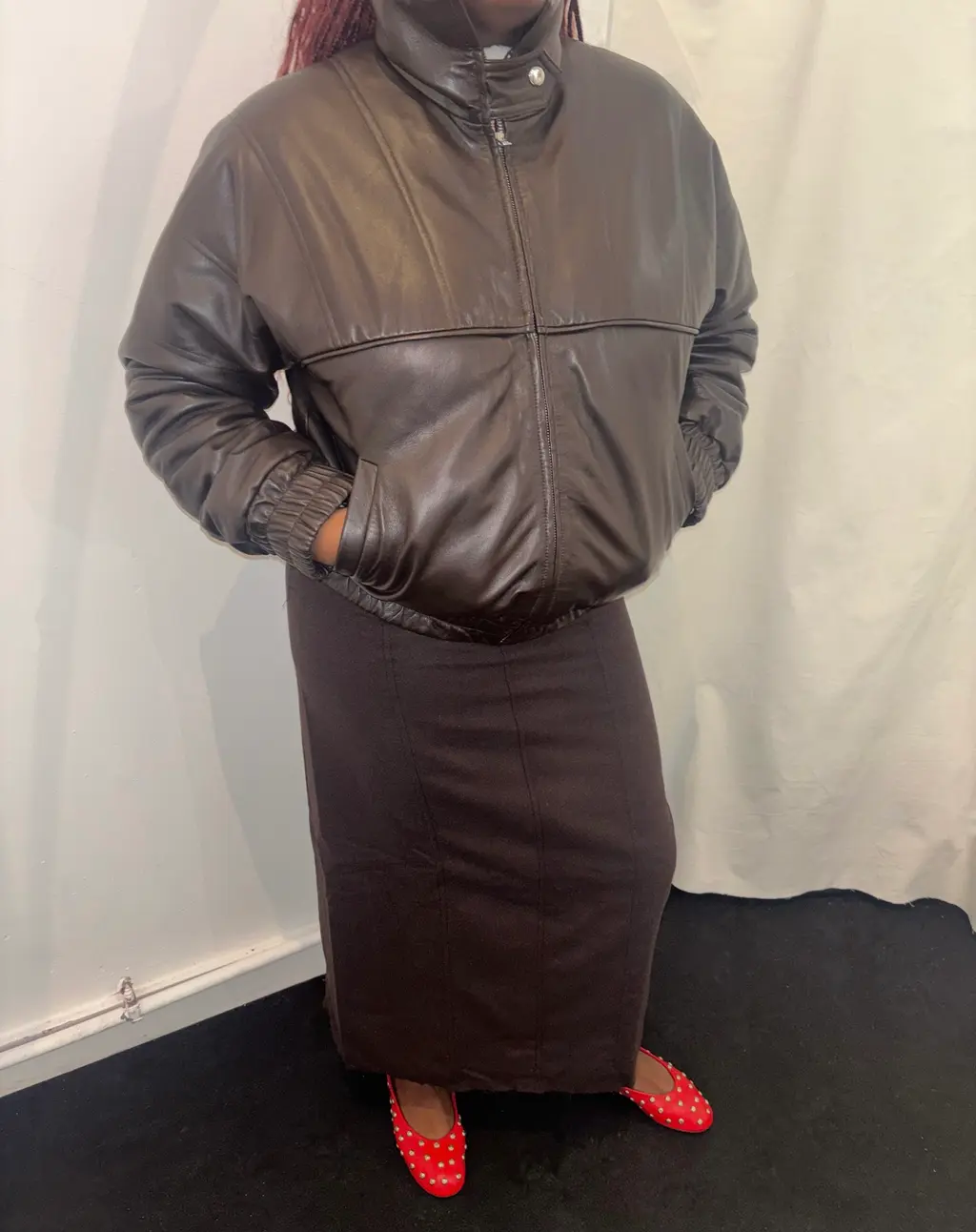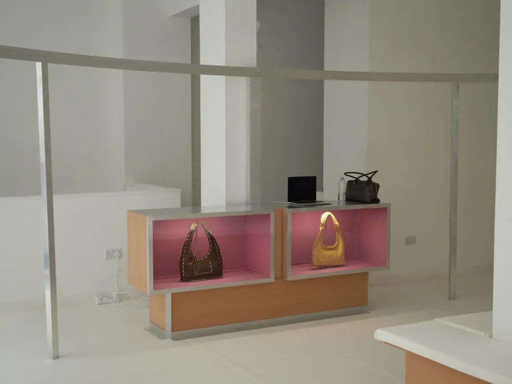 Things look a little different inside the central London pop-up this time: they’ve installed a circular rail that sits in the middle so customers can peruse the collection at their leisure and avoid bumping into one another. Footwear and sumptuous bags are encased in glass boxes (you can, of course, try on as many of the studded ballet pumps and bags as you like). And the fitting room is a floor below, with several changing rooms and mini catalogues of the collection lying around to flick through. You might even bump into Rina Lipa carrying a mountain of goods (true story) and various boyfriends, no longer seated in some corner bored but, instead, harbouring goods from the brand’s new men’s line.