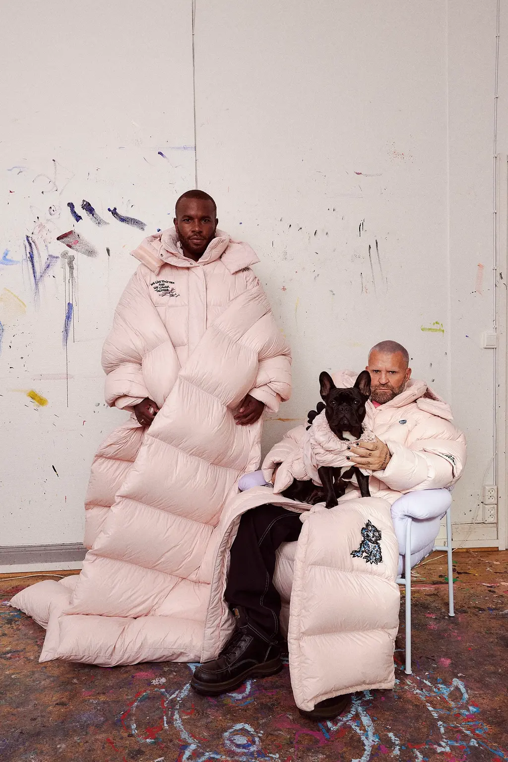 If you head over to Selfridges, you’ll be greeted by a millennial pink (yes, it’s back apparently) three-way partnership courtesy of Holzweiler, Caviar Kaspia, and artist Bjarne Melgaard. While it’s not the most obvious of collaborations, it works. Simply put: it’s a line almost entirely enveloped in a saccharine pink shade, boasting delicate scarves, puffer coats that offer plush Michelin man rolls, and T‑shirts, all with Bjarne’s illustrations emblazoned across the front.