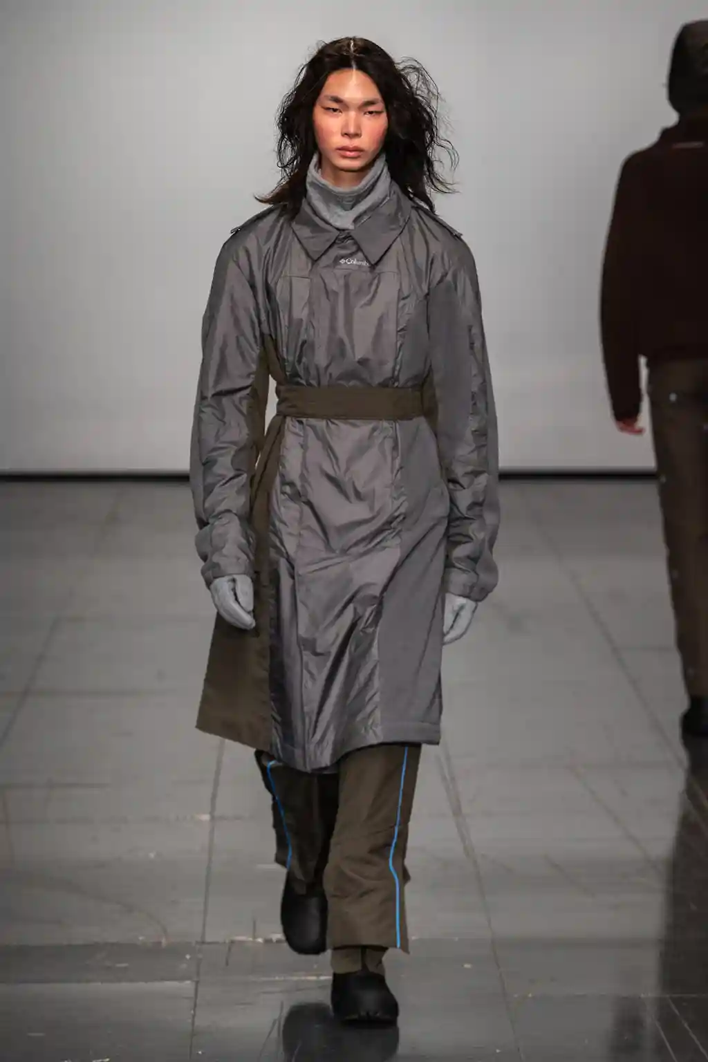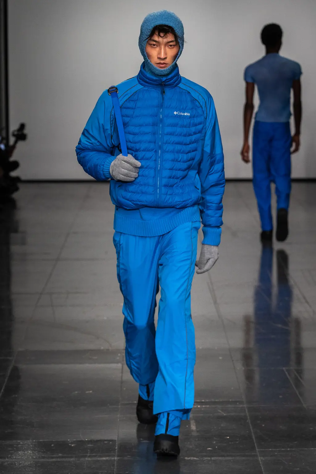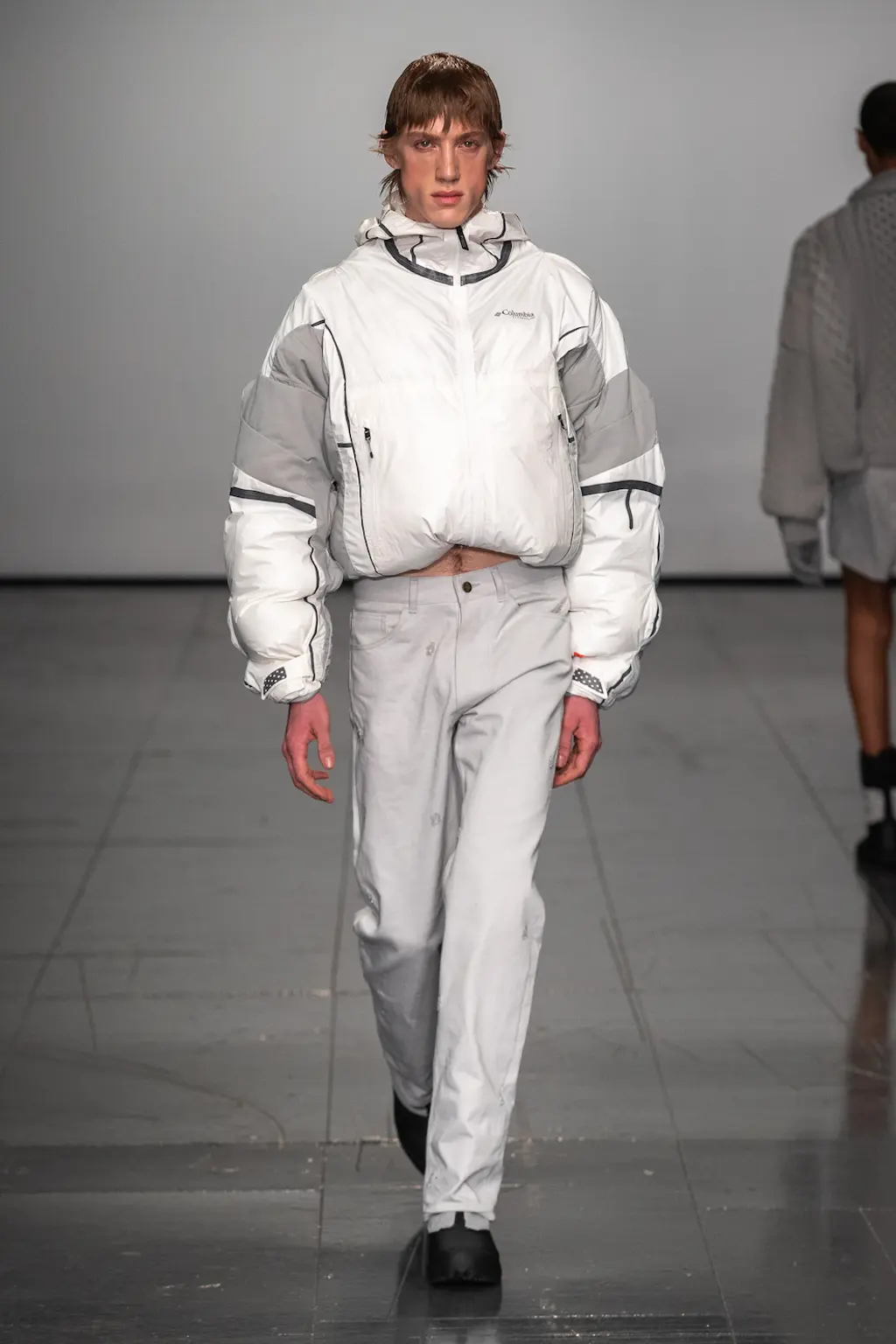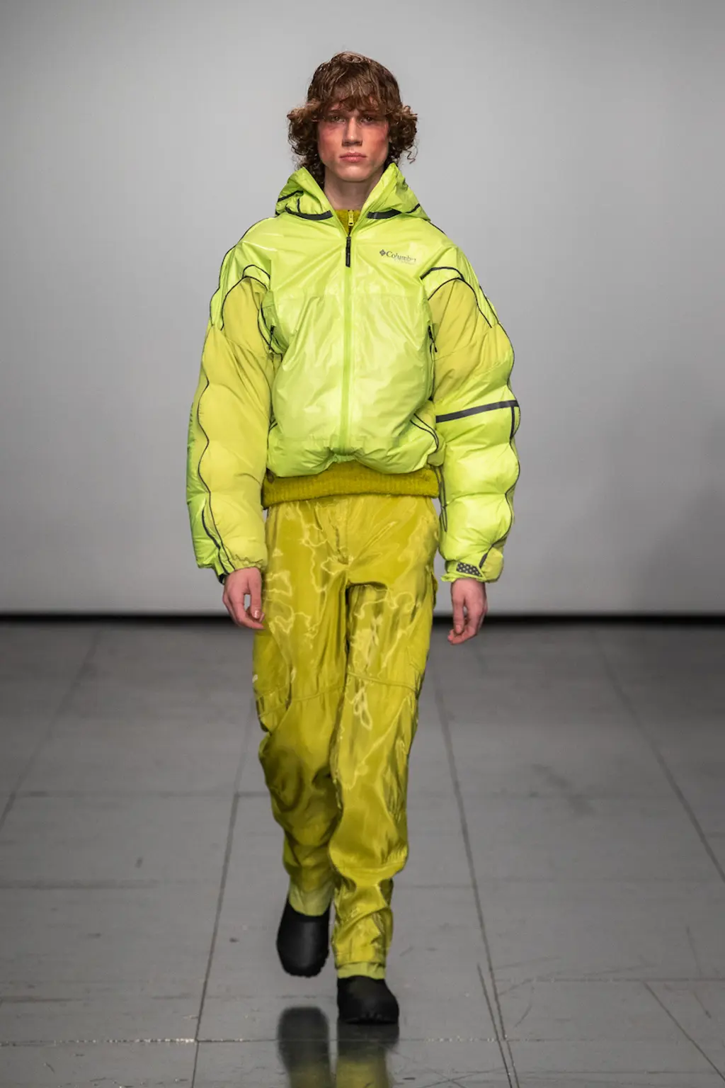 Irish menswear designer and Fashion East alum Robyn Lynch made a triumphant return to physical shows this London Fashion Week, with her largest yet most concise collection to date. It also marked the second iteration of her collab with outerwear giant Columbia, a continuation of the pair’s mutual knack for pushing the boundaries of textiles and fabrications as far (and as sustainably) as they can go. That ethos was at the forefront of Lynch’s AW22 collection.