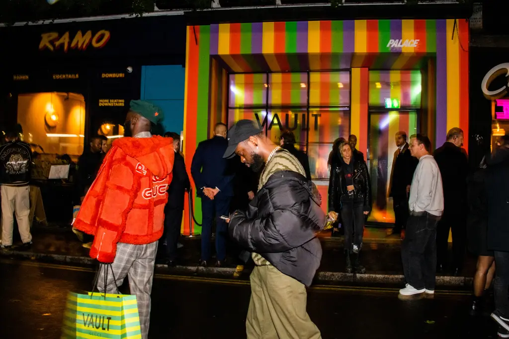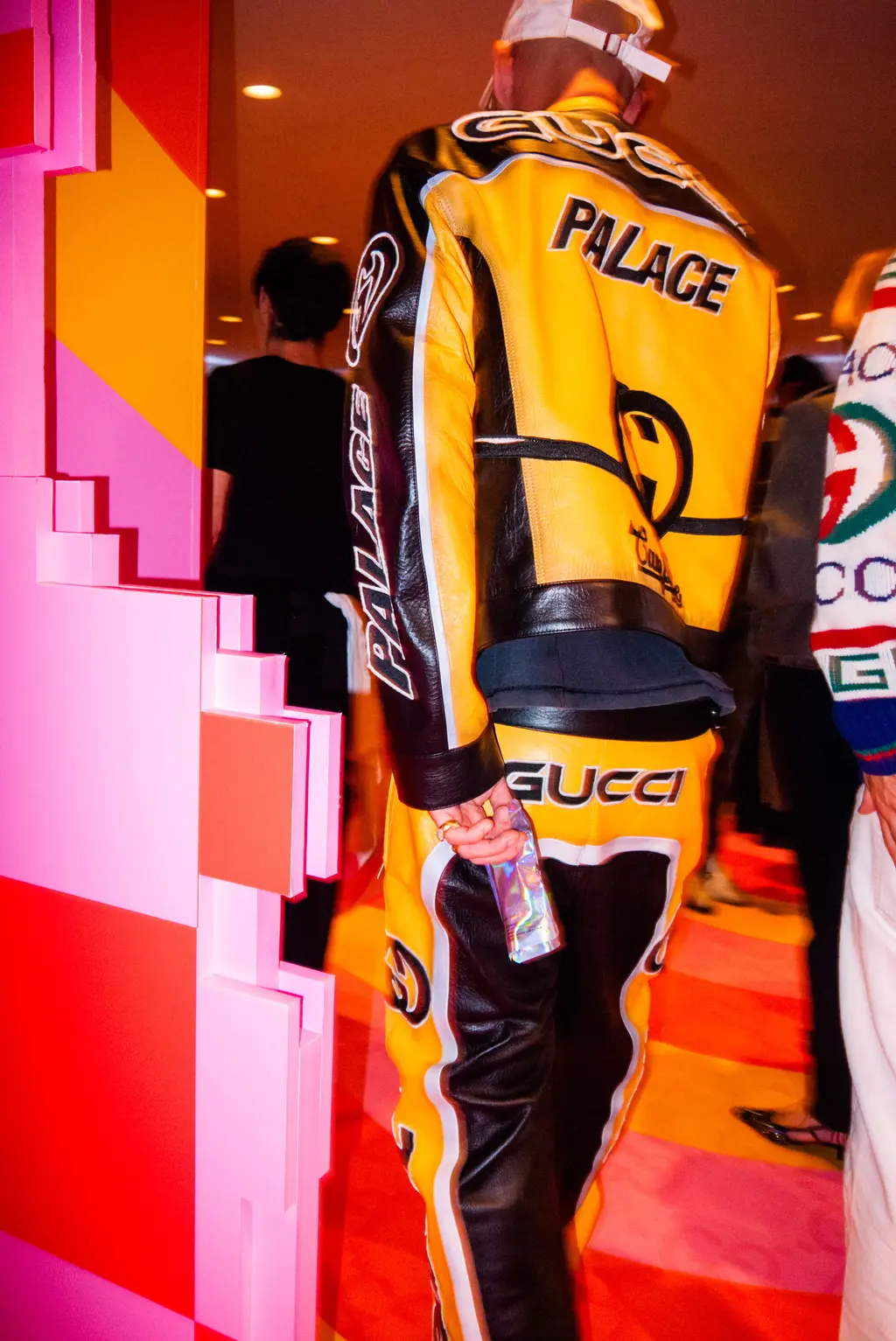 Seeing in the collaboration in style, the launch event brought together both the Palace and Gucci community, seeing the likes of Kristen McMenamy, Francis Bourgeois, Kojey Radical, Priya Ragu, Alice Dellal, Akinola Davies Jr and of course co-founders Lev Tanju and Gareth Skewis swing by. It goes without saying that the drip was full-on leaking; the collection’s buzziest pieces were repped, including the instant-classic motorbike jacket complete with roaring panthers and a retro-inspired Palazzo Gucci emblem (by none other than Lev himself). Continuing on from the rave soundtrack for the campaign video, the record bag was stacked with nineties classic, acid-house squelchers and bass-heavy rollers.