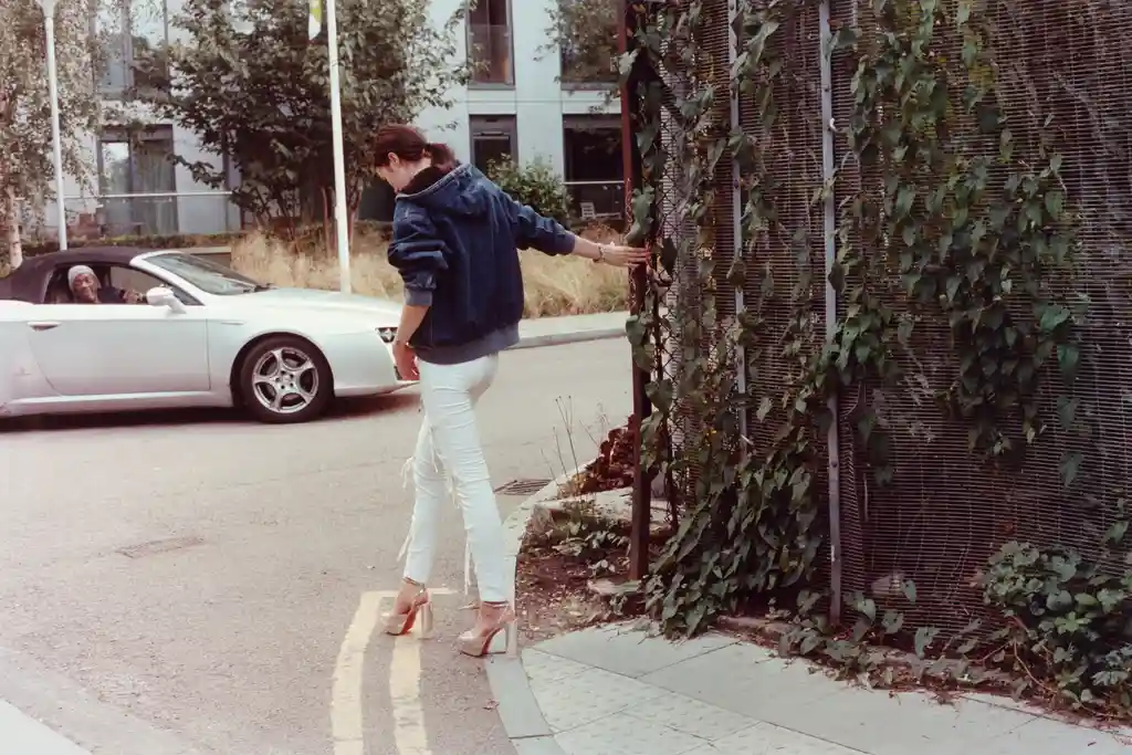 Samu wears jacket CARHARTT WIP, jeans stylist’s own, bracelet MAISON MARGIELA and shoes CHRISTIAN LOUBOUTIN