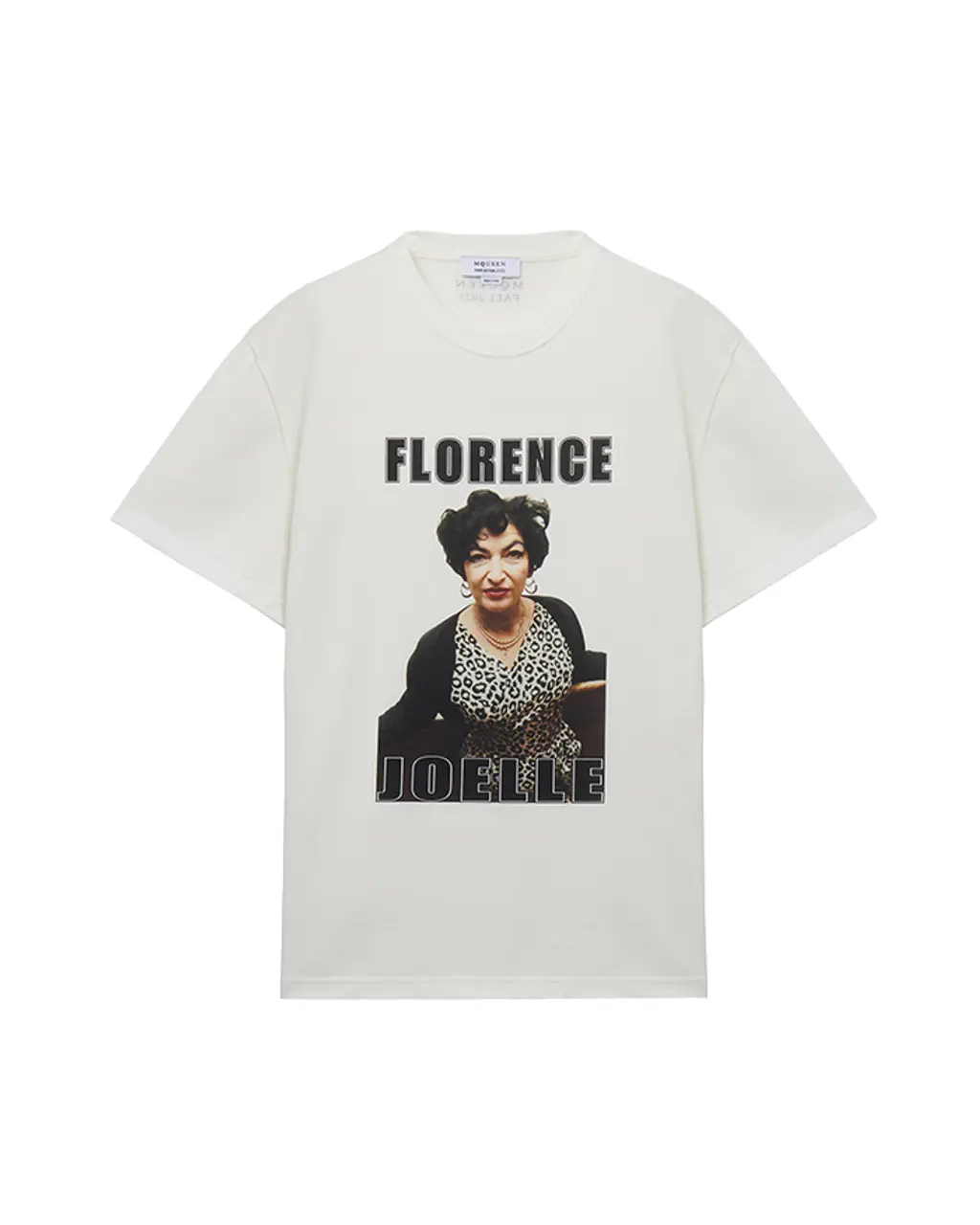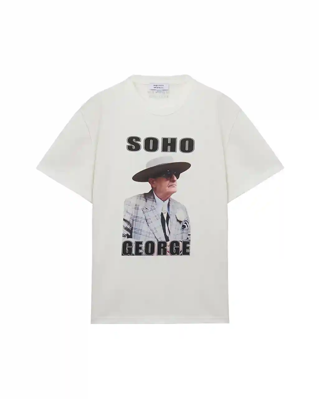 Want more Florence and Soho George? Head over to the McQueen site to grab a T‑shirt featuring the faces of Soho’s living legends. Don’t say we don’t spoil you.