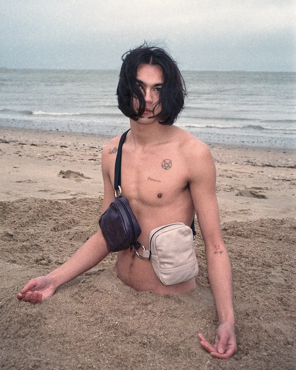 Makes sense. His “Wearable and Unwearable Outcomes” (a line he uses to describe the brand’s ethos) are steeped in industrial influence, like angular cuts, protective fabrics and functional features. His Modular bags, a staple throughout his collections, comprise of three mini side bags attached together via metal hoops, which are interchangeable depending on how much you’re carrying that day, while his shirts (classic shape, traditional fit) come artfully hand painted. Ooh la la.