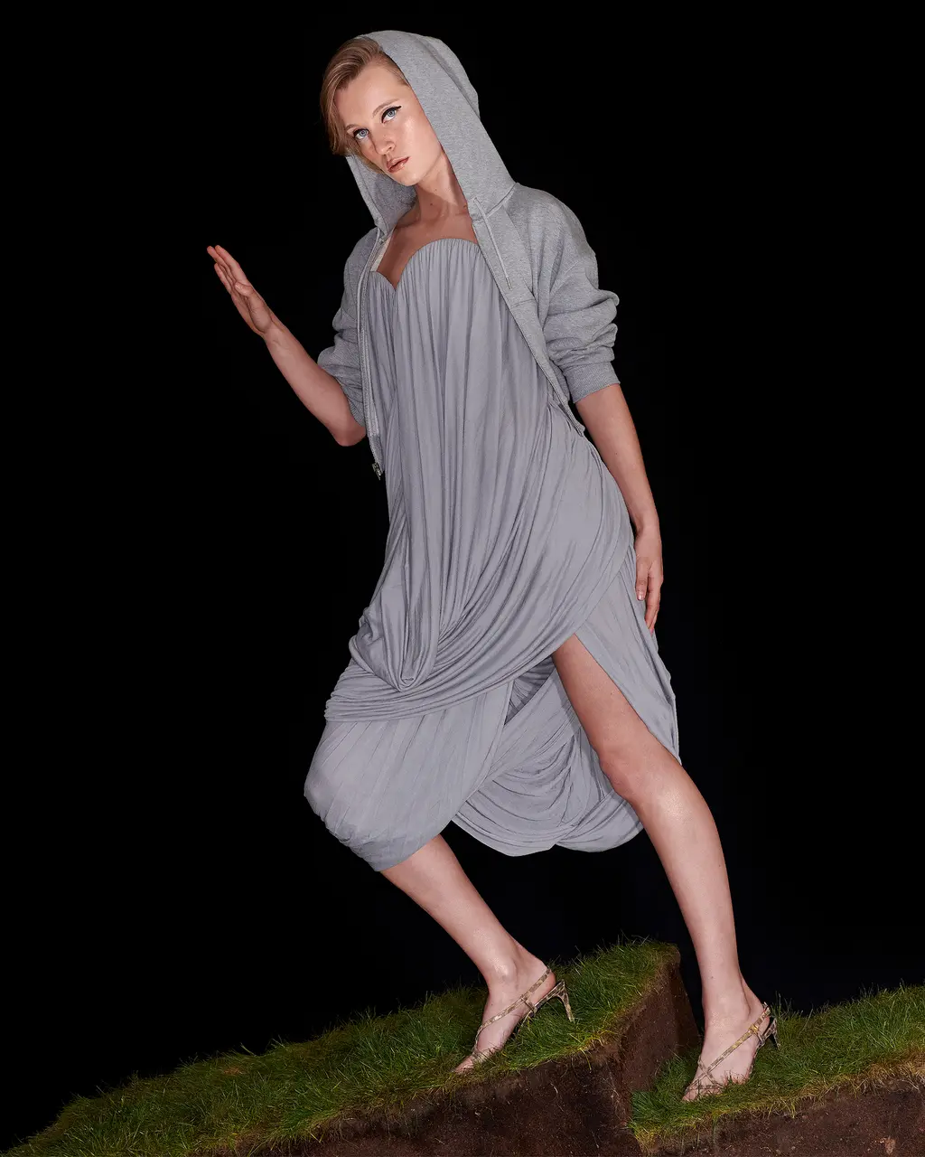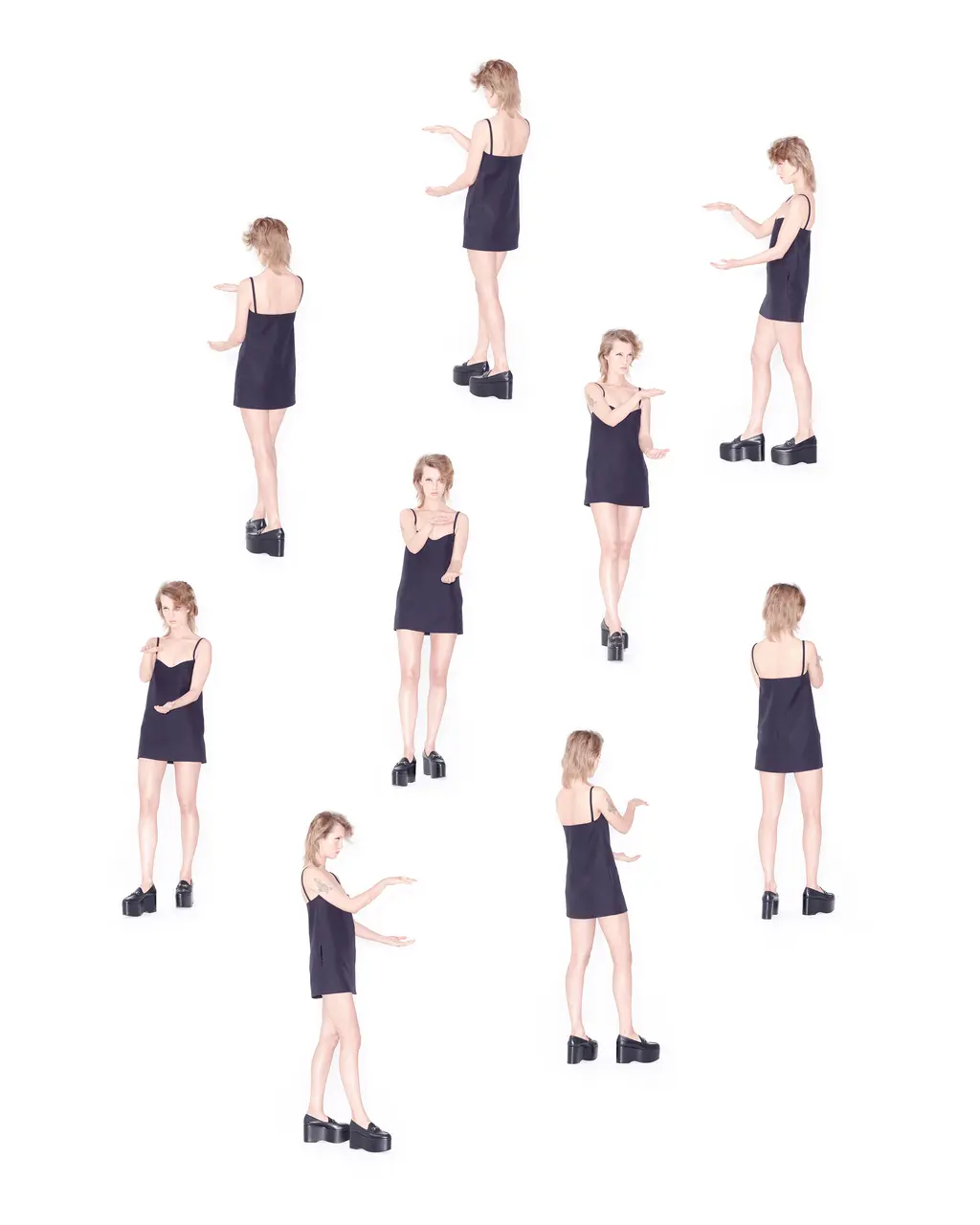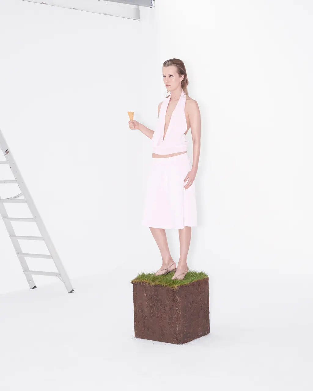 LJ wears jumper and shoes CELINE BY HEDI SLIMANE and dress LOEWE